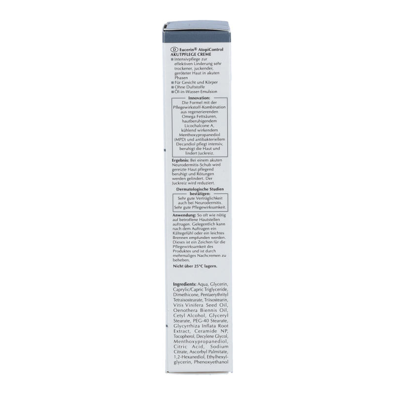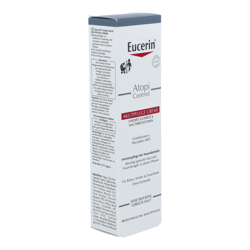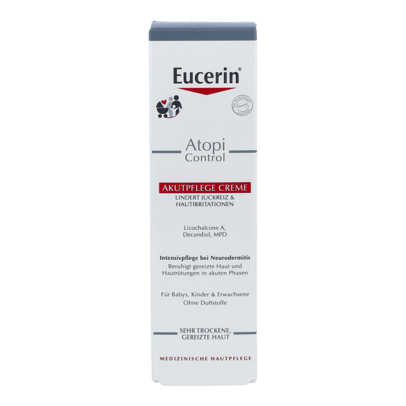 Eucerin AtopiControl Akutpflege Creme durchbricht mit beruhigender Pflege den Juck-Kratz-Kreislauf bei atopisch trockener Haut. Um die optimale Wirkung dieser Creme zu erhalten, so oft wie nötig auf die betroffenen Bereiche auftragen, um die Haut intensiv zu pflegen und zu beruhigen