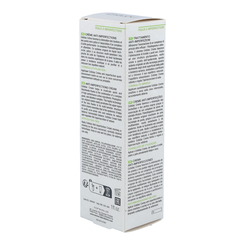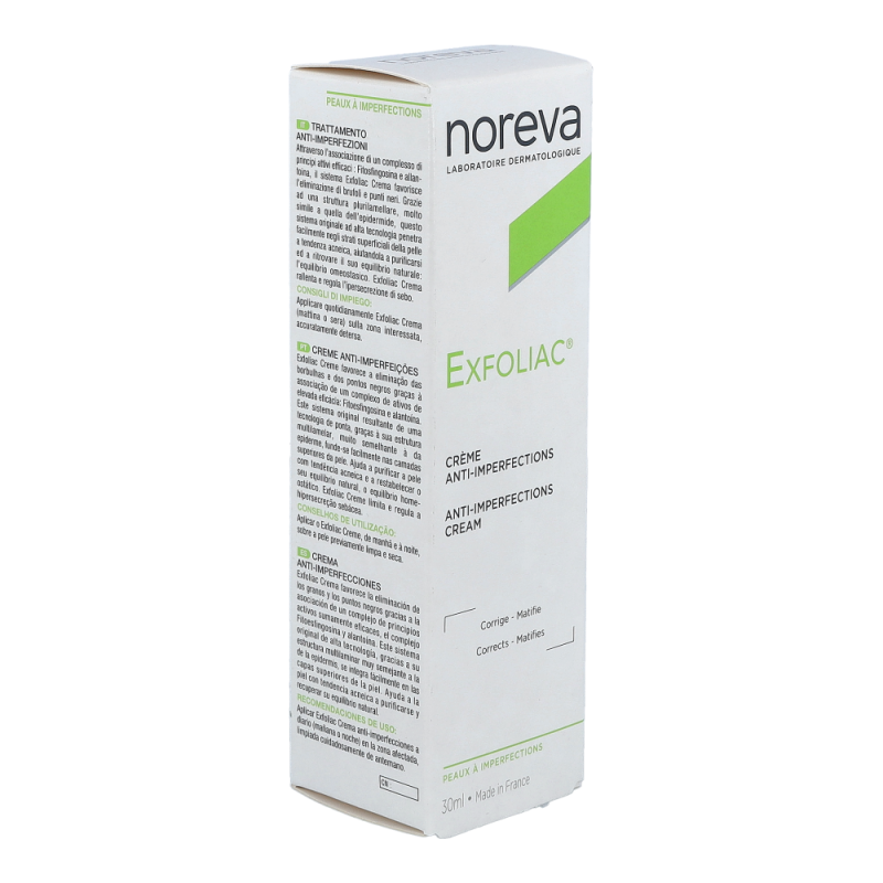 Noreva Exfoliac Anti-Imperfections hemmt die bakterielle Vermehrung auf der Haut, verbessert die Barrierefunktion und reguliert die Talgsekretion.
