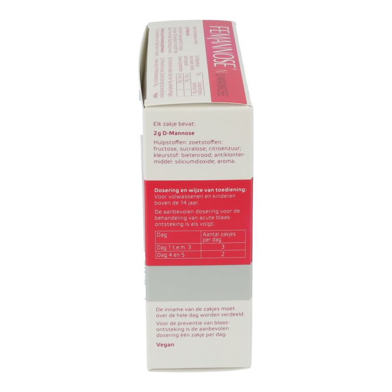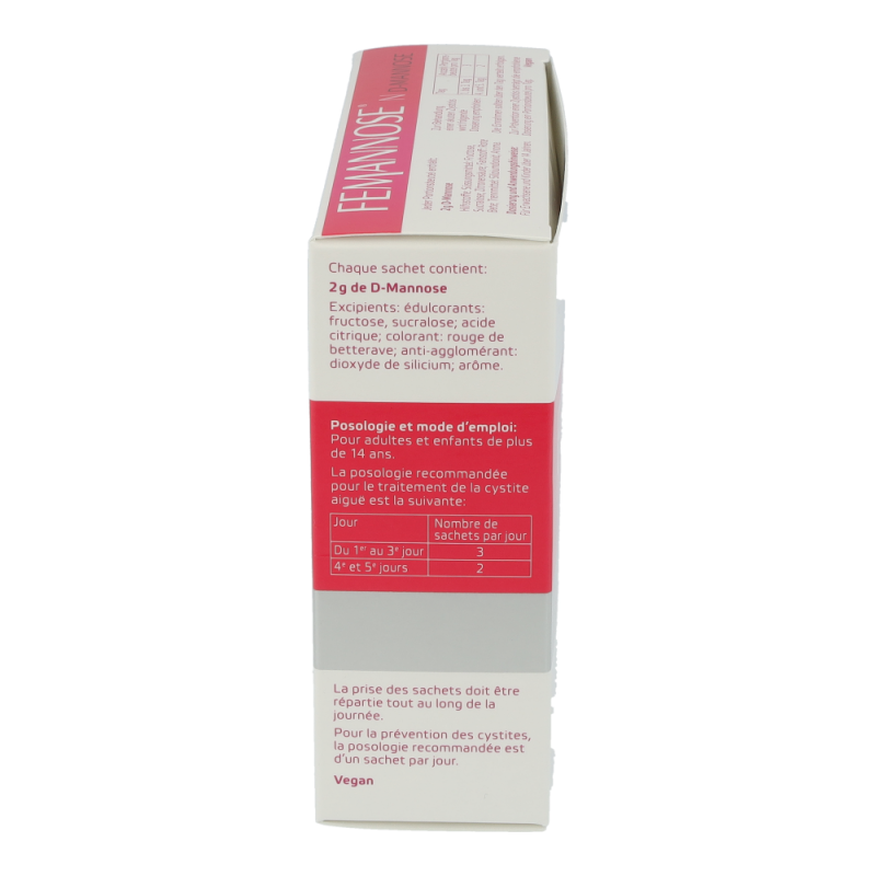 FEMANNOSE®Nkann im Akutfall und zur Prävention von Harnwegsinfekten und Blasenentzündungeneingesetzt werden. Im Akutfall werden am 1. bis 3. Tag jeweils 3 Sachetseingenommen und am 4. und 5. Tag jeweils 2 Sachets. Zur Prävention kann 1 Sachetpro Tag eingenommen werden. Das Granulat wird in Wasser aufgelöst.