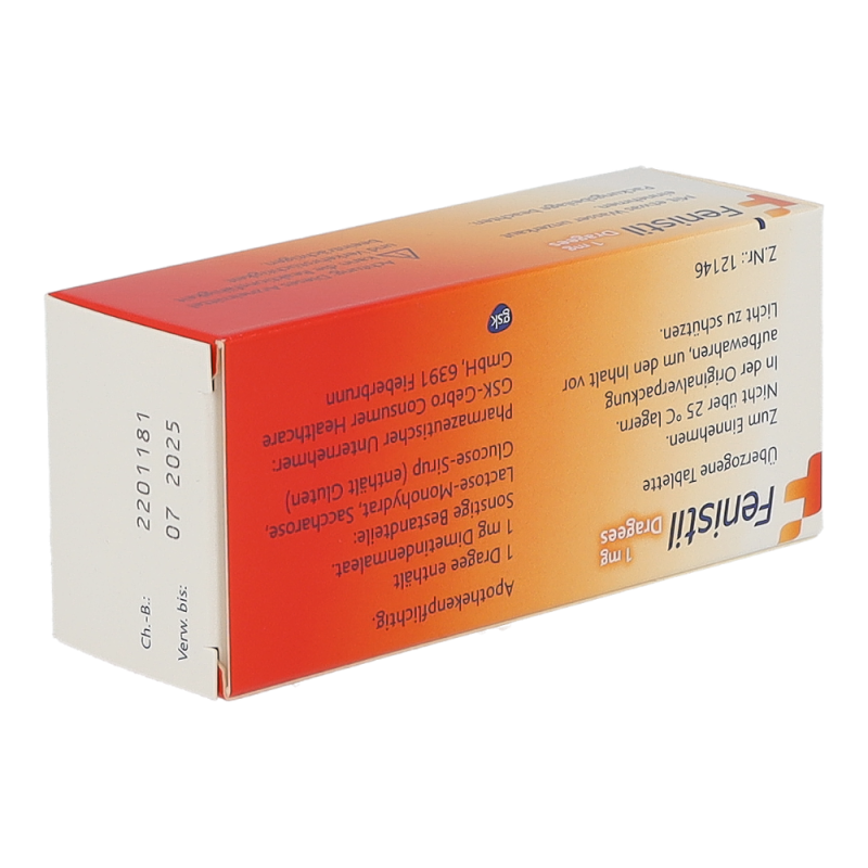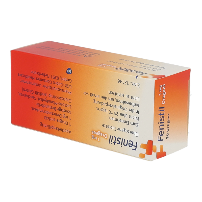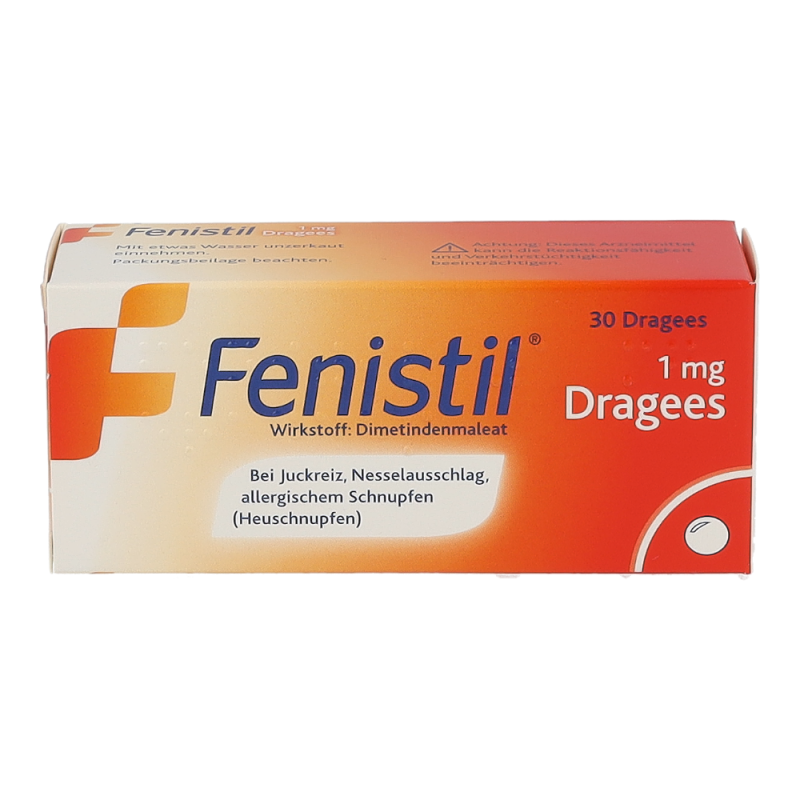 Fenistil Dragees – ein Antihistaminikum zum Einnehmen bei Beschwerden aufgrund von Allergie sowie Niesreiz und Juckreiz verursacht durch z.B. Ekzeme, Insektenstiche oder Kinderkrankheiten wie Windpocken. Das Produkt ist geeignet für Kinder ab 12 Jahren.