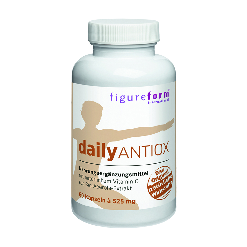 Figureform Daily Antiox Kapseln ist die ideale Form, dem Körper Vitamin C zuzuführen, da es das am besten aufzunehmende Vitamin C enthält. Vitamin C vermindert Müdigkeit und Erschöpfung. Außerdem schützt Vitamin C Zellbestandteile vor oxidativen Schäden.