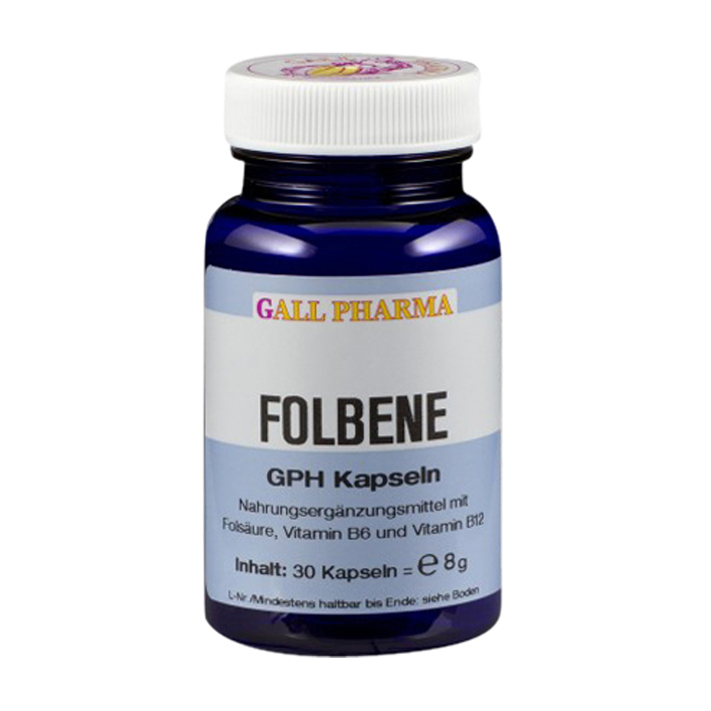 Folbene GPH Kapseln enthalten 5,4 mg Vitamin B6, 600 µg Folsäure und 9 µg Vitamin B12 in einer Hartgelatinekapsel. Diese essentiellen Vitamine sind eine sinnvolle Ergänzung zu den über die normale Ernährung aufgenommenen Mengen.