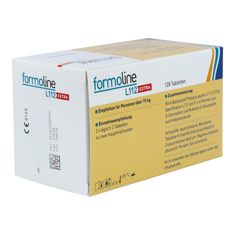 Formoline L112 Extra enthält 75% mehr Wirkstoff für Personen über 75 kg. Es enthält Lipidbinder zur Unterstützung der Gewichtskontrolle, Verminderung der Cholesterinaufnahme aus der Nahrung sowie der Behandlung von Übergewicht.