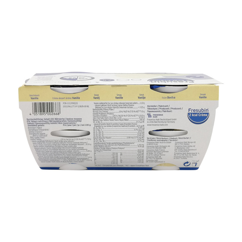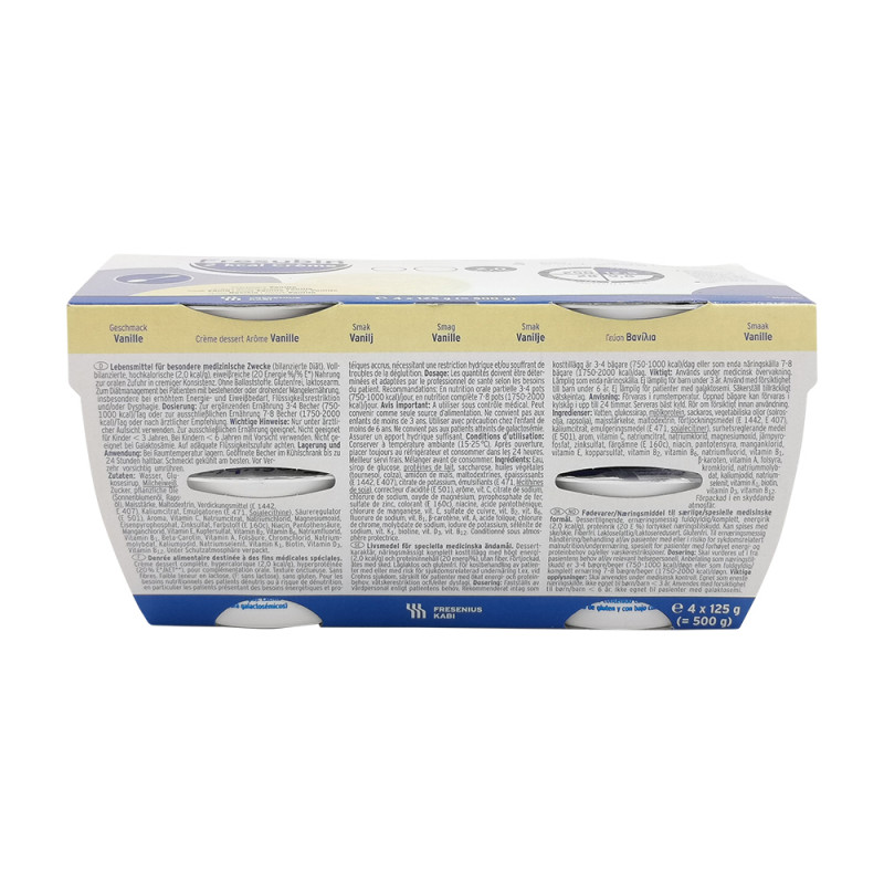 Fresubin 2 kcal Crème – Cremig, energiereich und zum Löffeln. Die perfekte Alternative zur Trinknahrung: der köstliche Nährstoffschub für zwischendurch. Das puddingartige Dessert überzeugt durch seine cremige Konsistenz. In unserem praktischen Becher (125 g): einfach zu öffnen und zu greifen. Zum Diätmanagement bei Patienten mit bestehender oder drohender Mangelernährung, insbesondere bei erhöhtem Energie- und Eiweißbedarf oder oder Dysphagie.