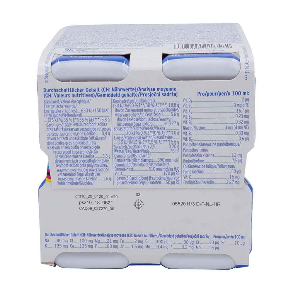 Wasser, Maltodextrin, Milcheiweiß, pflanzliche Öle (Rapsöl, Sonnenblumenöl), Zucker, Aromen, Kaliumcitrat, Natriumcitrat, Emulgatoren (E 471, Sojalecithin), Rote Bete-Pulver, Natriumchlorid, Kaliumchlorid, Vitamin C, Cholinchlorid, Magnesiumoxid, Säureregulatoren (E 330), Eisenpyrophosphat, Zinksulfat, Niacin, Vitamin E, Pantothensäure, Manganchlorid, Kupfersulfat, Vitamin B6, Vitamin B2, Natriumfluorid, Beta-Carotin, Vitamin B1, Vitamin A, Folsäure, Chromchlorid, Natriummolybdat, Vitamin K1, Kaliumjodid, Natriumselenit, Biotin, Vitamin D3, Vitamin B12.