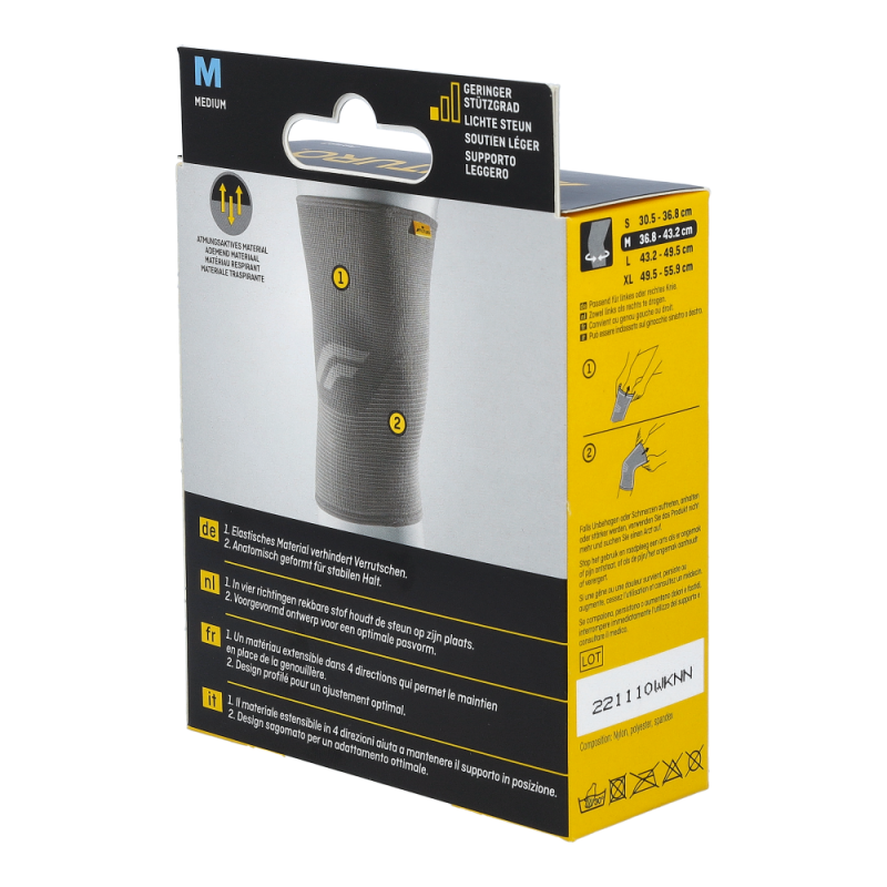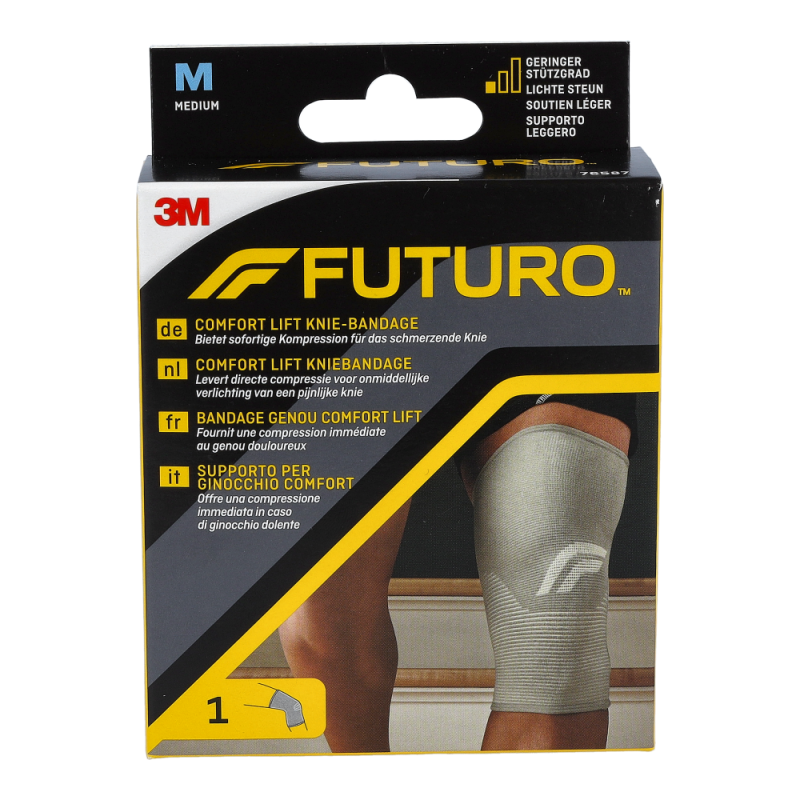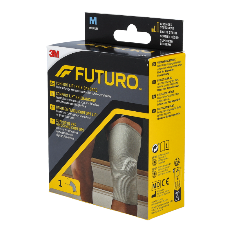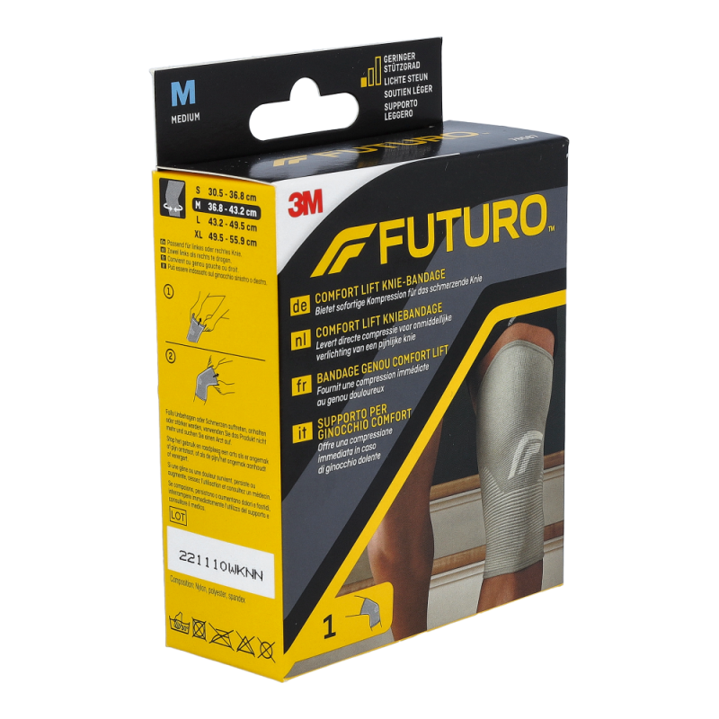 Mit ihrem besonders weichen Material ist die FUTURO™ Comfort Lift Knie-Bandage in Größe L sehr angenehm zu tragen. Sie gibt Kniegelenken eine leichte Unterstützung mit Wärmeeffekt und Ihnen die Möglichkeit, sich unbeschwert zu bewegen. Die Bandage passt sich perfekt an und verhindert unangenehme Druckstellen – den ganzen Tag. Die Bandage ist sowohl links- als auch rechtsseitig unauffällig unter der Kleidung tragbar. Sie wurde in Zusammenarbeit mit Fachärzten und Physiotherapeuten entwickelt. Bei beginnenden Knieproblemen eine preisgünstige Alltagshilfe!