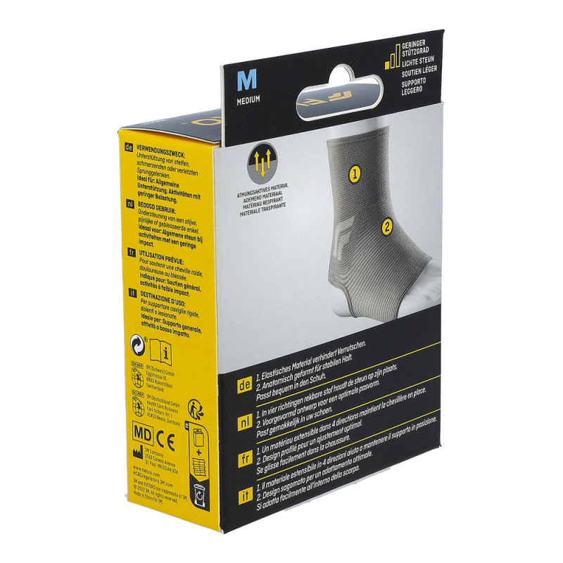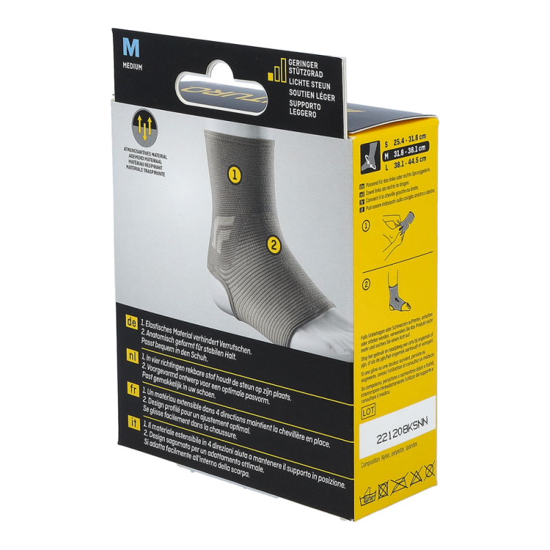 Mit ihrem besonders weichen Material ist die FUTURO™ Comfort Lift Sprunggelenk-Bandage in Größe L sehr angenehm zu tragen. Sie gibt Sprunggelenken eine leichte Unterstützung mit Wärmeeffekt und Ihnen die Möglichkeit, sich unbeschwert zu bewegen. Die Bandage passt sich perfekt an und verhindert unangenehme Druckstellen – den ganzen Tag. Die Bandage ist sowohl links- als auch rechtsseitig unauffällig unter der Kleidung tragbar. Sie wurde in Zusammenarbeit mit Fachärzten und Physiotherapeuten entwickelt. Bei beginnenden Sprunggelenkproblemen eine preisgünstige Alltagshilfe!