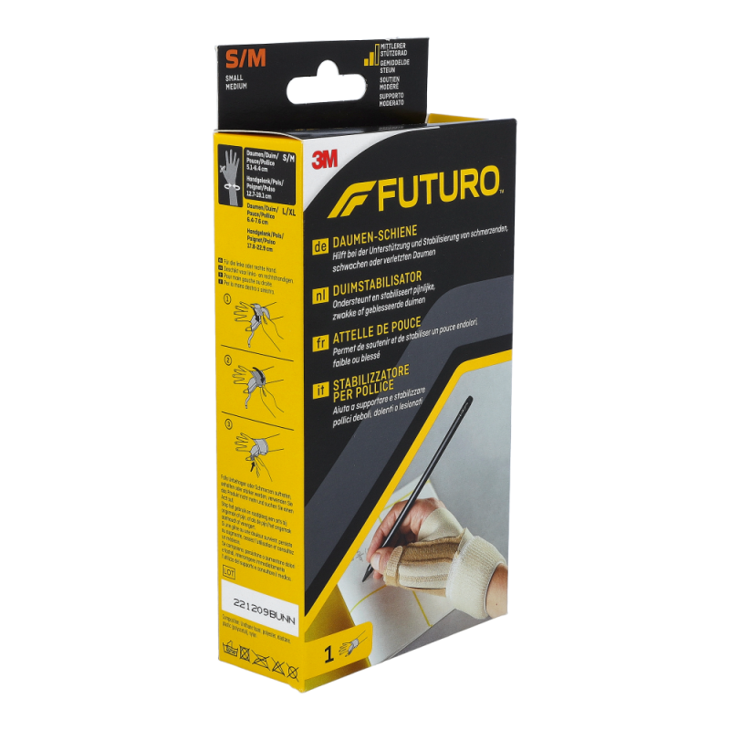 Die Futuro Daumen-Schiene bietet Schutz und stabilisierenden Halt bei Reizungen des Daumengrundgelenks, arthritischen Symptomen und degenerativen Gelenkerkrankungen.