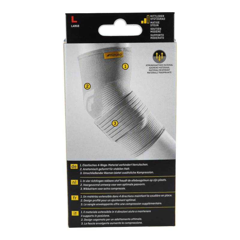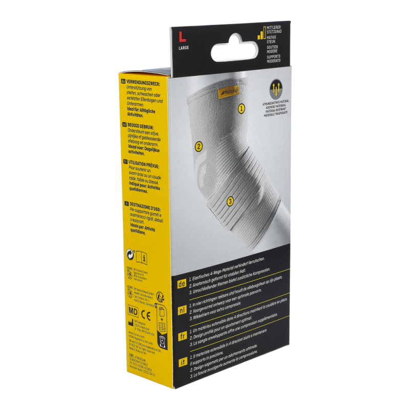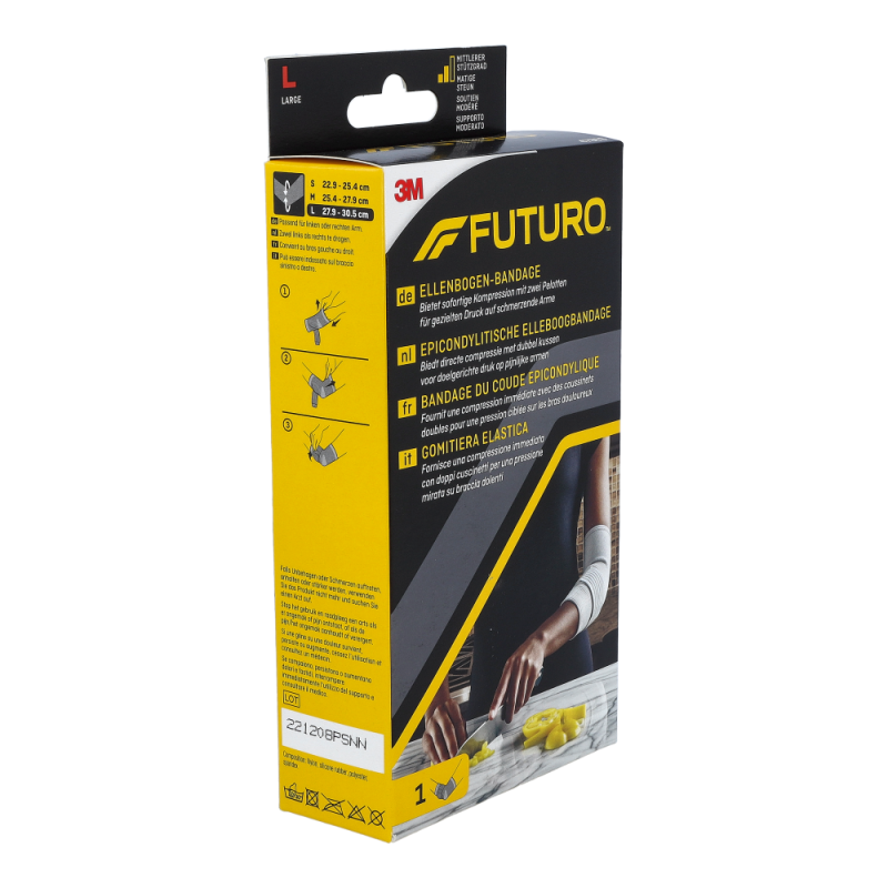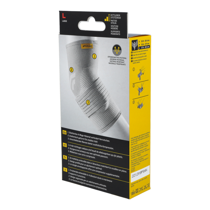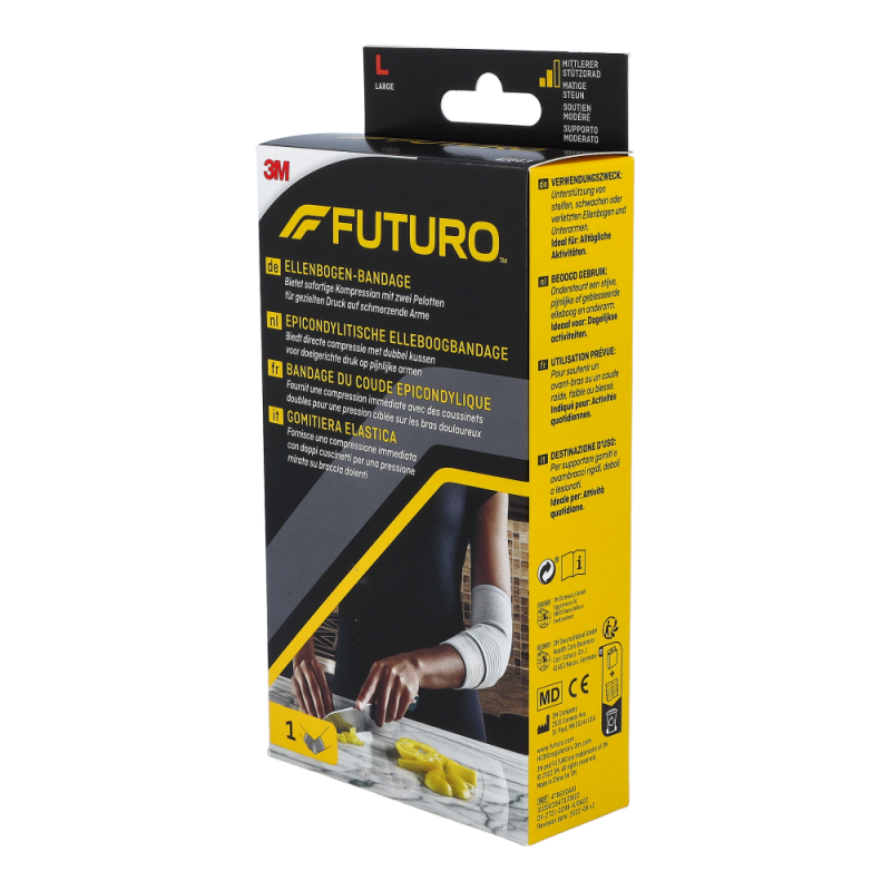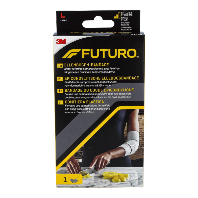 Futuro® Ellenbogen Epikondylitis Bandage lindert Beschwerden im Ellenbogen und in den Unterarmen und bringt Sie ohne Schmerzen durch den Tag. Ideal für Tennis- und Golferarm.
