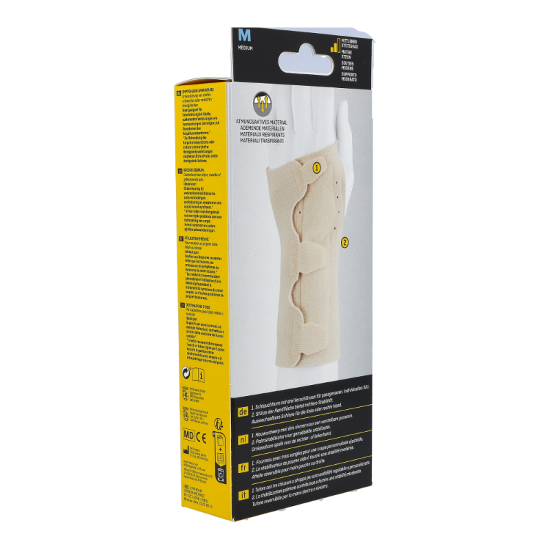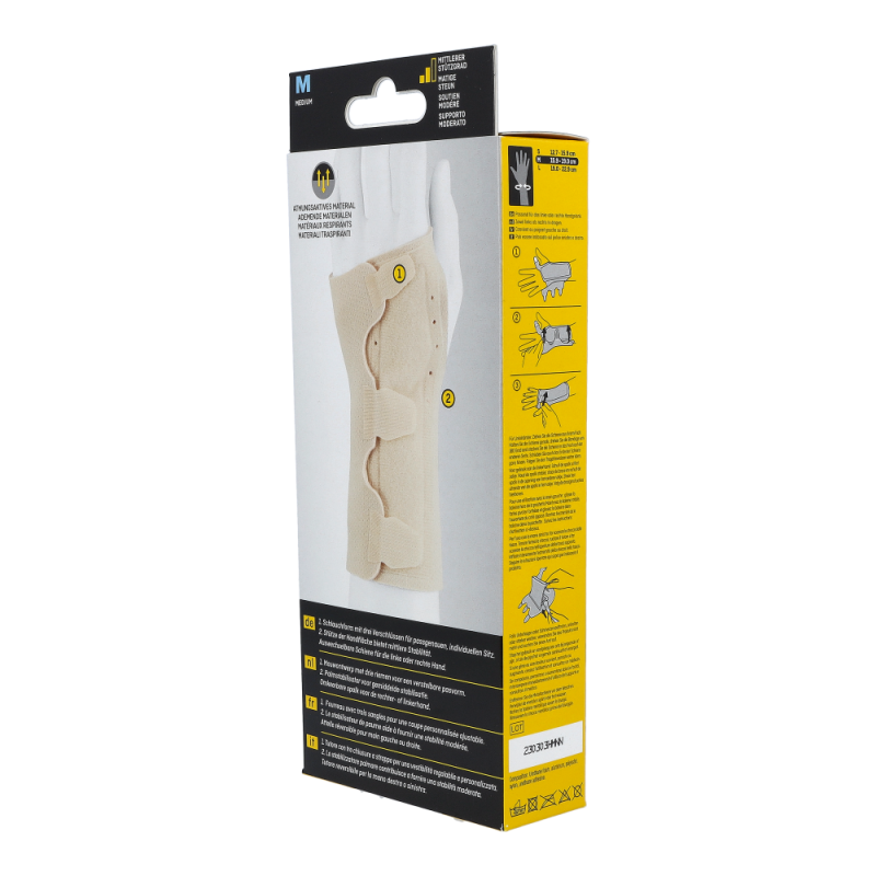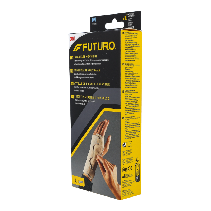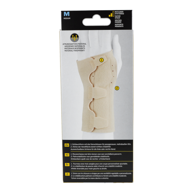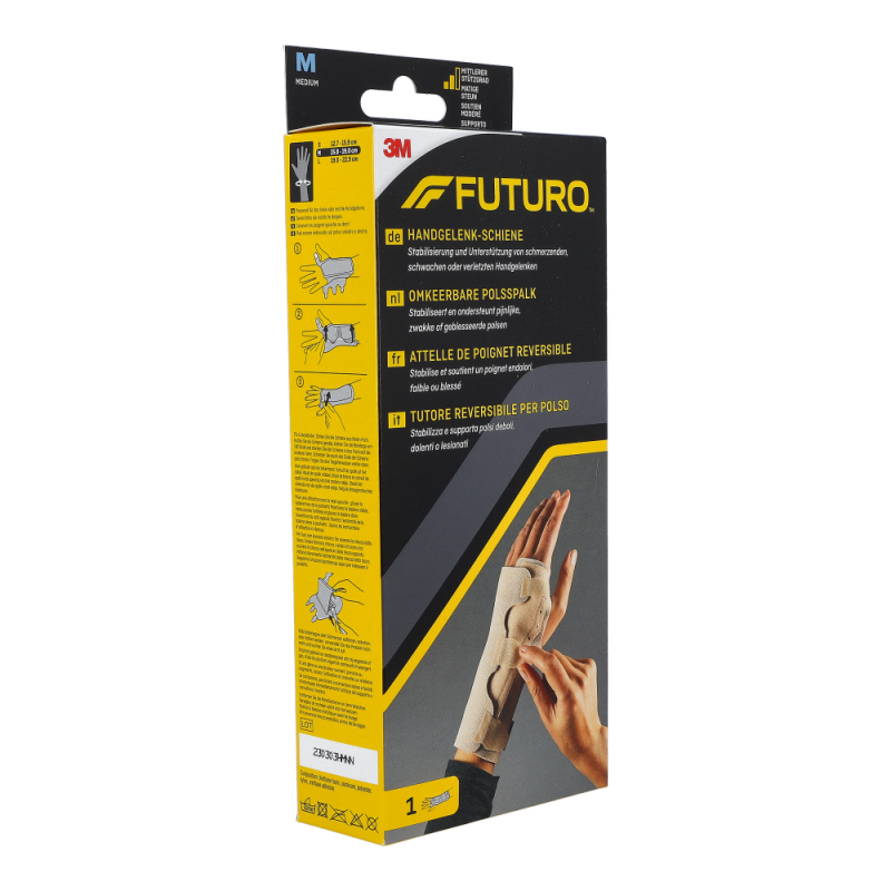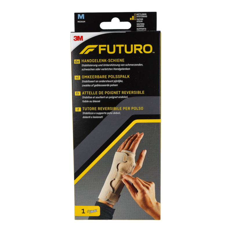 Futuro Handgelenksschiene dient der festen Stabilisierung des Handgelenks und hilft bei der Linderung von akuten Reizungen, Überlastung und degenerativen Schmerzen. Die Schiene kann auch nach Ruhigstellung verwendet werden. Die Schiene trägt sich sehr angenehm dank ihres extra weichen, hautfreundlichen und atmungsaktiven Materials. Dabei sitzt sie optimal und stabilisiert je nach individueller Einstellung das Handgelenk.