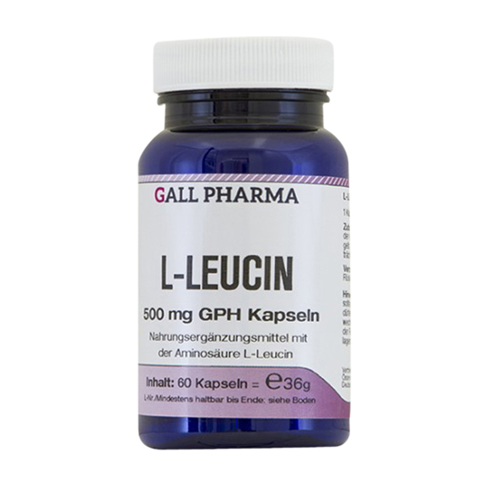 Gall Pharma L-Leucin 500 mg Kapseln enthalten 500 mg L-Leucin in einer Hartgelatinekapsel. L-Leucin ist wesentlich für die muskuläre Ausdauer und die körperliche Ausdauer-leistungsfähigkeit. Sie ist ein wichtiger Bestandteil des Muskeleiweiß. Das L-Leucin Stoffwechselprodukt HMB beschleunigt den Muskelaufbau.