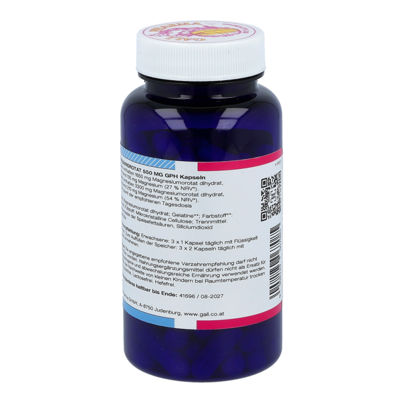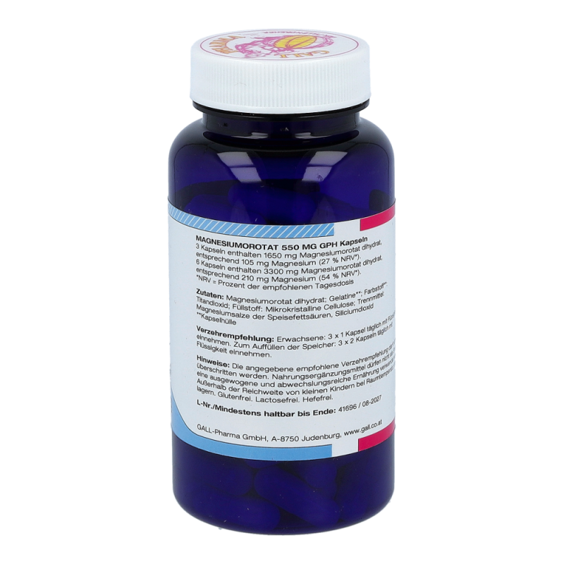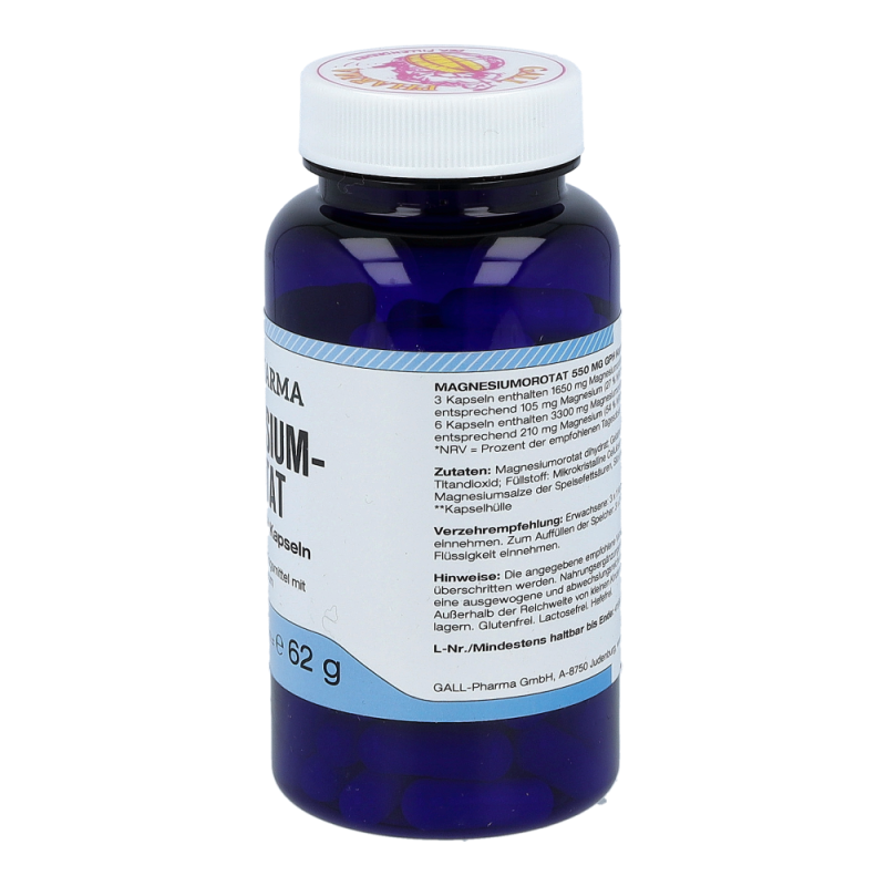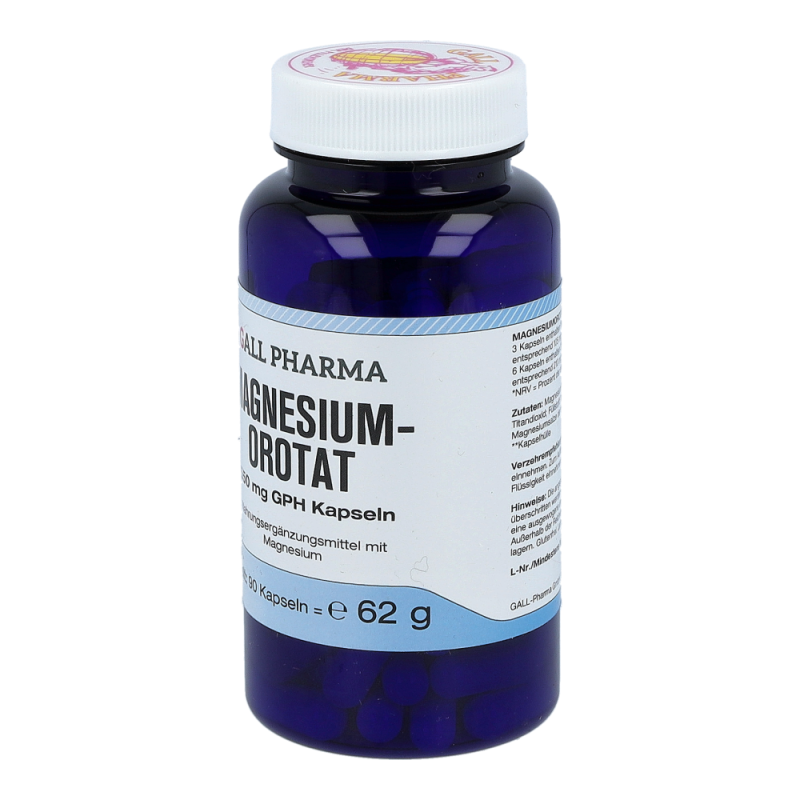 Magnesiumorotat 550 mg GPH Kapseln enthalten 550 mg Magnesiumorotat, das 35 mg elementaren Magnesium entspricht. Magnesium ist ein lebenswichtiger Mineralstoff, der an vielen Stoffwechselvorgängen und der Reizübertragung im Körper beteiligt ist. Einen Großteil des Magnesiums lagert der Körper in Knochen und Muskeln.