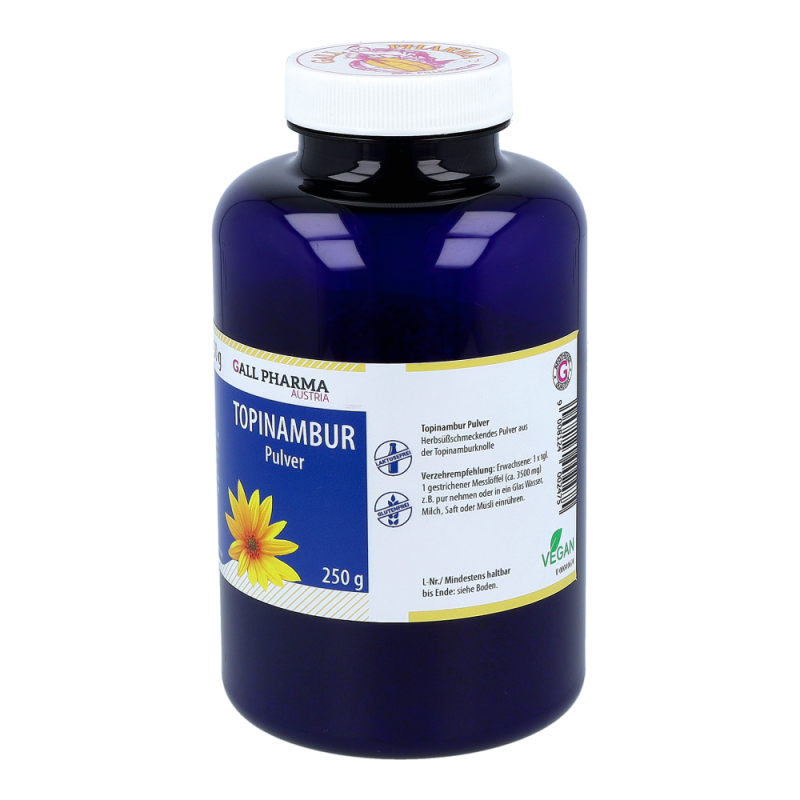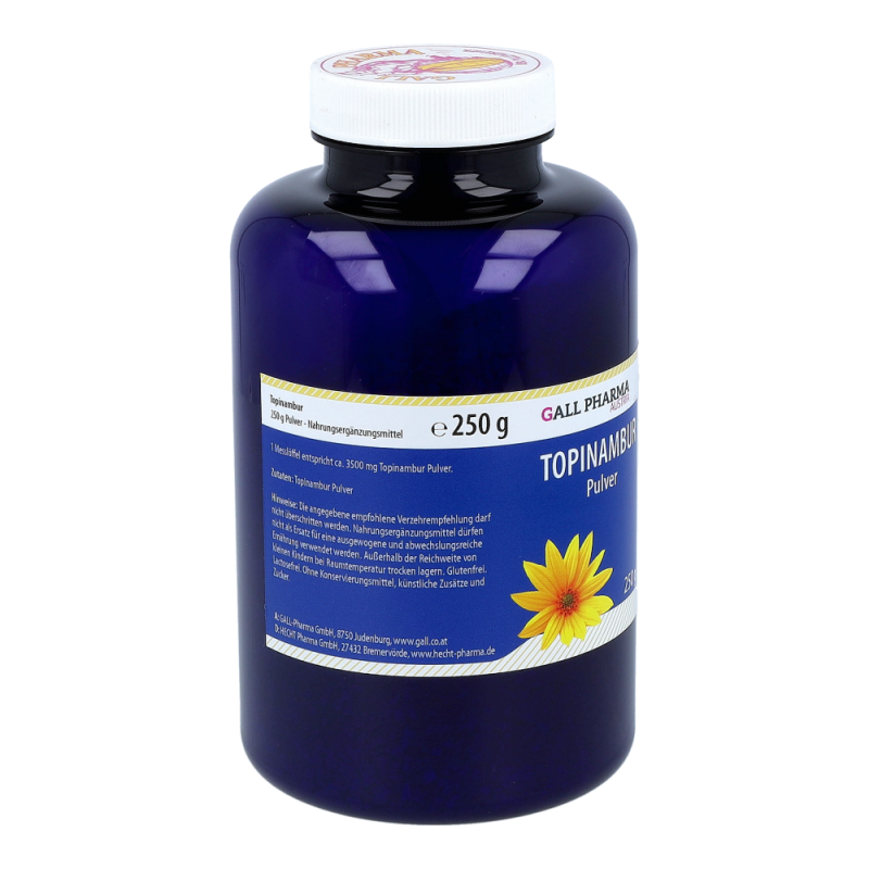 Gall Pharma Topinambur ist besonders reich an Inulin, einem Ballaststoff, der das Hungergefühl dämpft, ein Sättigungsgefühl erzeugt und die Verdauung anregt. Durch die vielen weiteren natürlichen Inhaltsstoffe, wie Vitamine, Mineralstoffe und Spurenelemente, stellt Topinambur eine wertvolle Nahrungsergänzung dar. Dieses Produkt erhalten Sie als Spray (50 ml) und als Pulver (250 g).