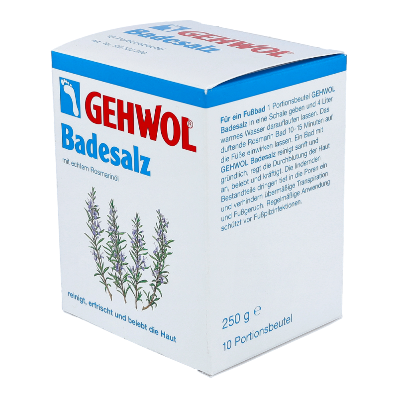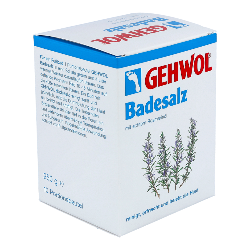 Gehwol Badesalz ist ein belebender Rosmarinbadezusatz der reinigt, erfrischt und die Haut belebt.