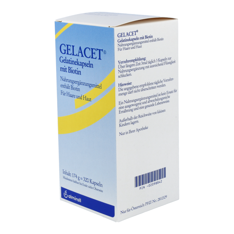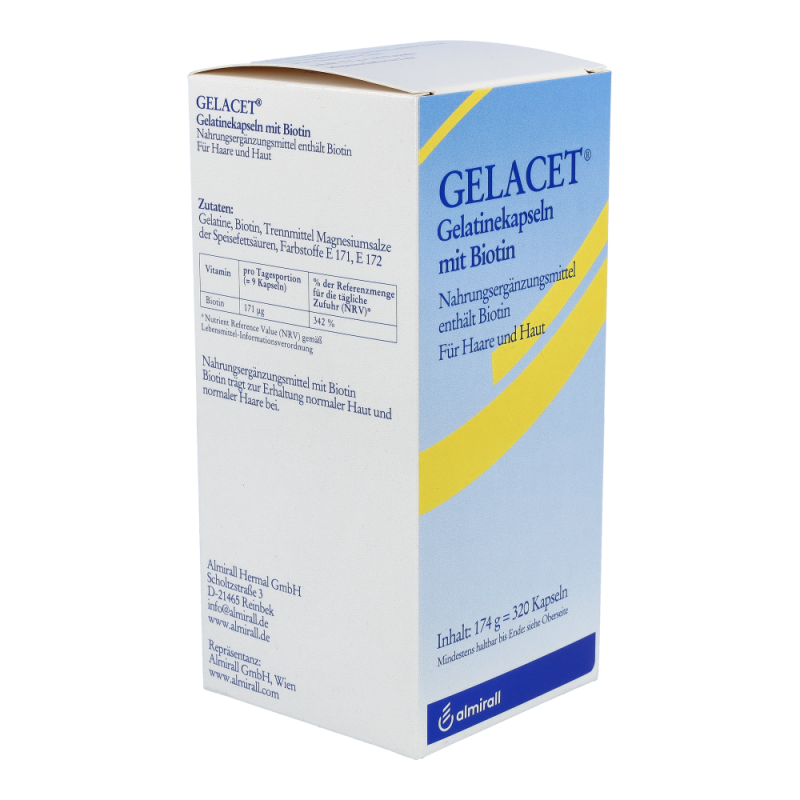 Gelacet Gelatine + Biotin Kapseln sind eine Nahrungsergänzung, die speziell auf die Ernährung von Haaren und Nägeln ausgerichtet ist. Die Kapseln können dazu beitragen, den Haar- und Nagelzustand günstig zu beeinflussen.