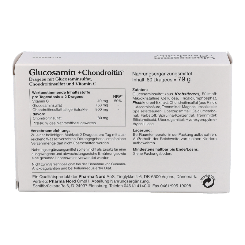 Gelenk Duo Dragees 60 Stk. ist ein Nahrungsergänzungsmittel zur Stärkung von Muskeln und Gelenken. Glucosamin und Chondroitin kommen in natürlicher Form im Gelenkknorpel vor. Glucosamin spielt eine wichtige Rolle im reibungslosen Bewegungsablauf der Gelenke, während Chondroitin zu den ,,stoßdämpfenden“ Eigenschaften der Gelenke beiträgt. Mit Vitamin C, das zur Aufrechterhaltung normaler Kollagenbildung beiträgt Was ist Gelenk Duo? Neben Vitamin C, das zur Aufrechterhaltung normaler Kollagenbildung beiträgt, enthält Gelenk Duo Glucosaminsulfat. Glucosamin kommt in natürlicher Form im Knorpelgewebe unserer Gelenke vor. Der Zusatz “sulfat” bedeutet lediglich, dass das Glucosamin eine natürliche Schwefelquelle enthält.Woher kommt Glucosamin?Es gibt keine Nahrungsmittel, in denen Glucosamin in fertig verfügbarer Form vorliegt. Glucosamin kann am besten durch Einnahme eines Nahrungsergänzungsmittels aufgenommen werden. Das in Gelenk Duo enthaltene Glucosamin wird aus Wildgarnelen gewonnen,- nicht aus Zuchtgarnelen.Wie kann Ihnen Gelenk Duo helfen?Die tägliche Einnahme von Gelenk Duo ist eine gute Möglichkeit, Ihre Gelenke mit einigen der Stoffe zu versorgen, die in normalem Knorpelgewebe vorkommen. Das darin enthaltene Vitamin C unterstützt Ihren Körper und die biologischen Prozesse, die zur Beweglichkeit Ihrer Gelenke beitragen.