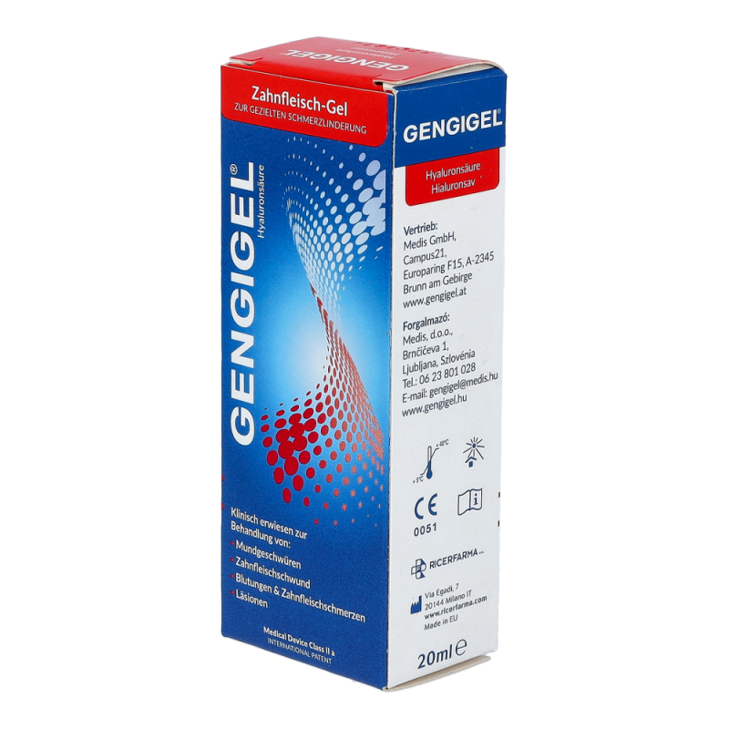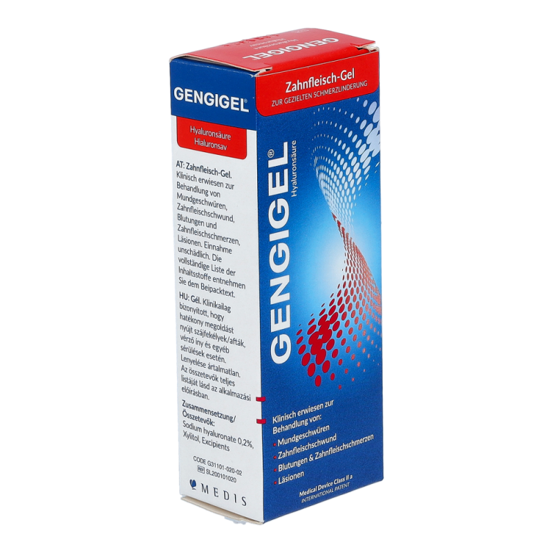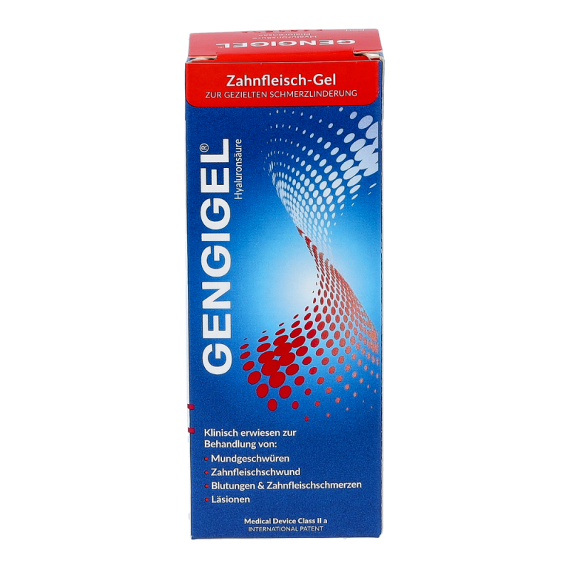 Gengigel – Gel bietet schnelle und effektive Hilfe bei: blutendem, entzündetem und geschwollenem Zahnfleisch.Es wird eingesetzt bei Zahnfleischverletzungen in Folge von gereiztem Mundgewebe durch festsitzenden oderabnehmbaren Zahnersatz oder Zahnspangen.Die in Gengigel enthaltene Hyaluronsäure gleicht der natürlichen Hyaluronsäure im gesunden Zahnfleisch.