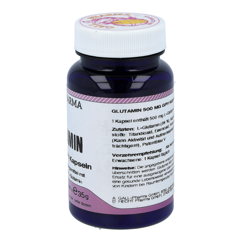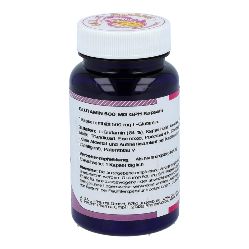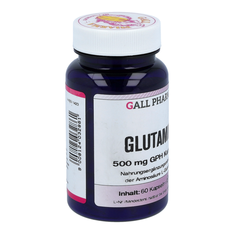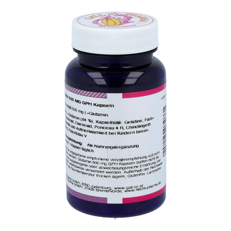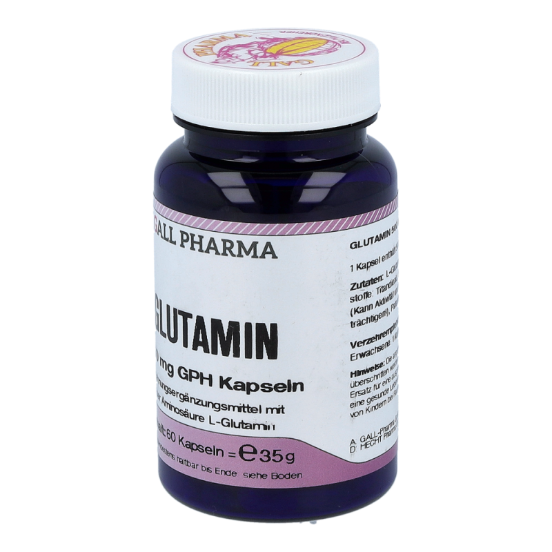 Gall Pharma Glutamin 500 mg Kapseln 30 Stk. enthalten 500 mg L-Glutamin in einer Hartgelatinekapsel. L-Glutamin ist eine der drei Aminosäuren, die am Aufbau von Glutathion beteiligt sind. L-Glutathion ist eines der bedeutendsten Antioxidantien in der Natur und hat eine positive Auswirkung auf die Gedächtnis- und Konzentrationsleistung.