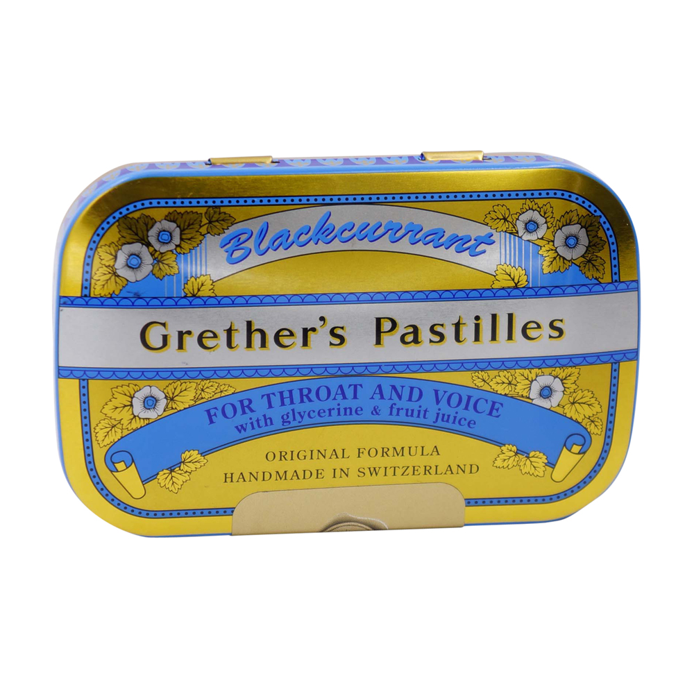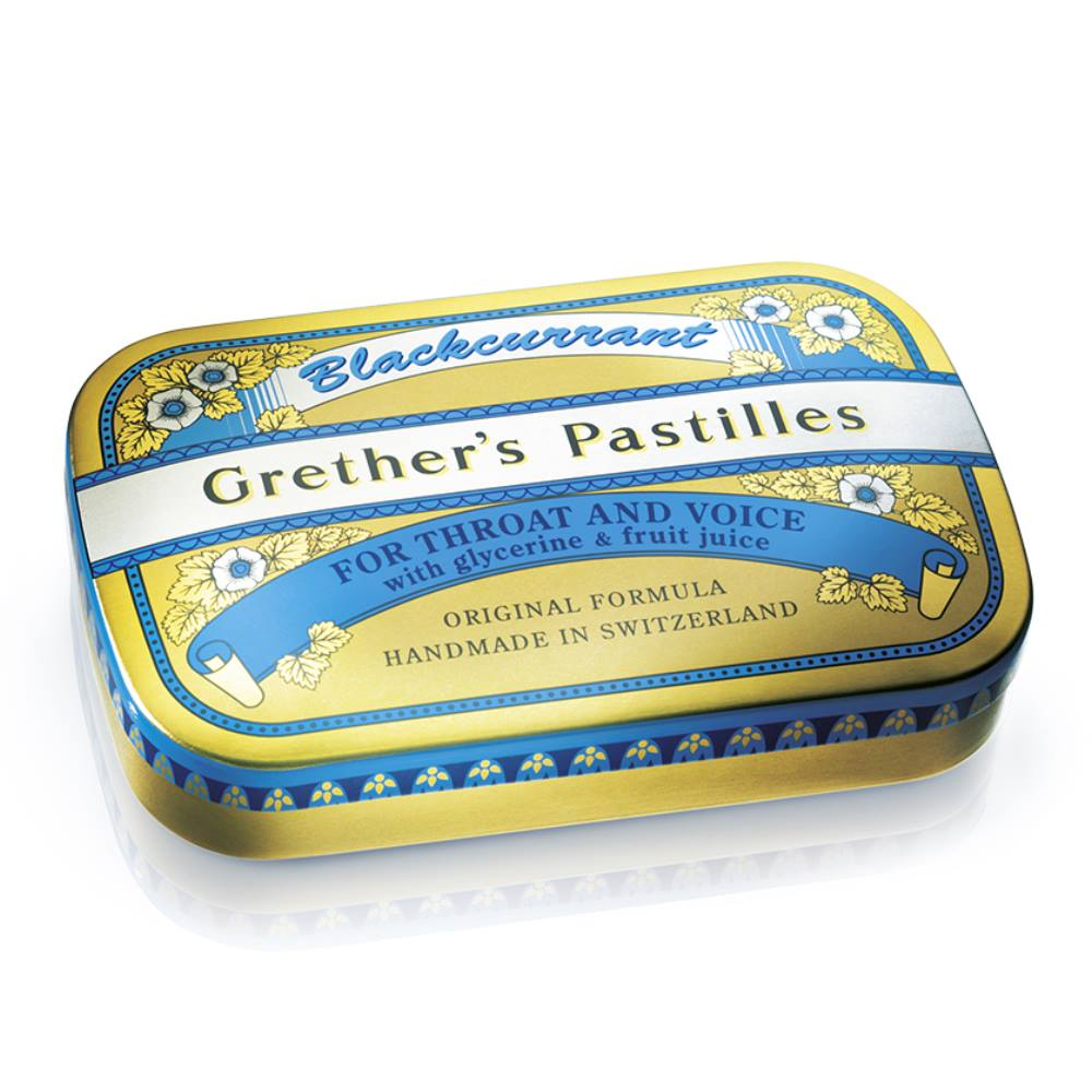 Grethers Pastillen Blackcurrant in der 60 g Dose mit Essenzen aus sonnengereiften Beeren und Blüten, wirksamem Glyzerin und hochwertigem Agar-Agar sind besonders wohltuend bei rauem Hals, Heiserkeit, strapazierter Stimme und trockenem Mund. Die schonend verarbeiteten Inhaltsstoffe lindern die Reizungen und legen sich wie ein Schutzfilm um beanspruchte Stimmbänder.