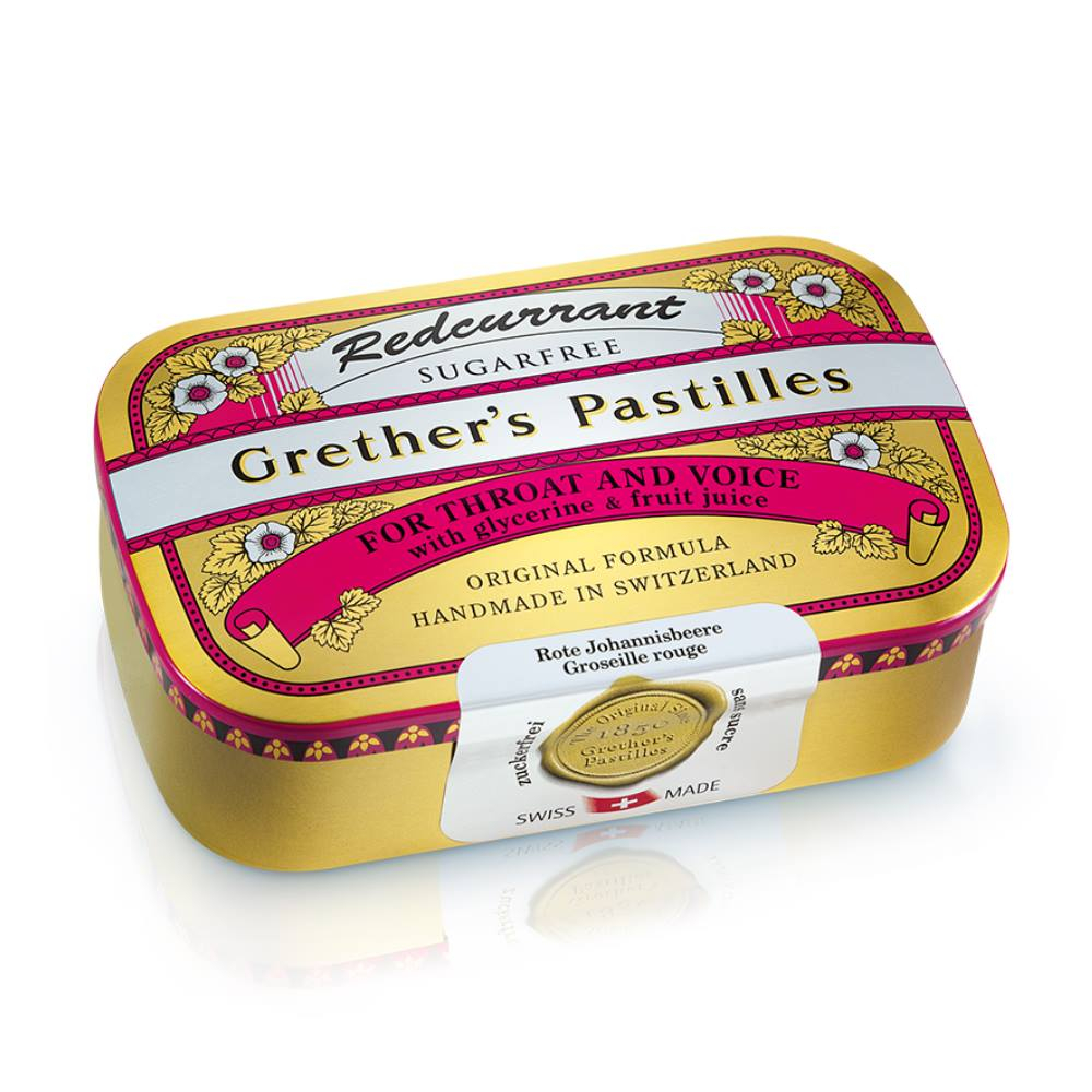 Grethers Pastillen Redcurrant zuckerfrei in der 110 g Dose mit der frisch-exotischen Komposition aus naturreinen Saft der Roten Johannisbeere, Vitamin C und Passionsfrucht schmecken verführerisch köstlich. Genießen Sie Grether’s Pastilles Redcurrant regelmäßig bei beanspruchter Stimme und bei beginnenden Beschwerden in Hals und Rachen.