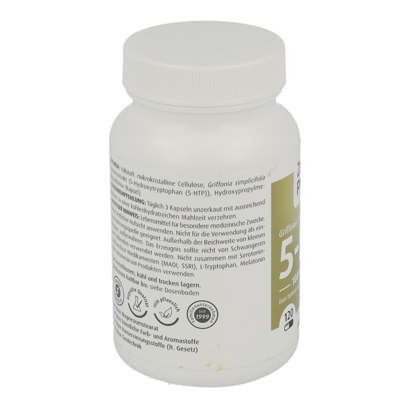 Griffonia 5-htp 100 mg Kapseln von Shanab Pharma enthält 5-Hydroxytryptophan, eine nicht-proteinogene α-Aminosäure. Diese ist natürlich Bestandteil von Lebensmitteln wie Bananen. Einen besonders hohen Gehalt an 5-HTP weisen die Samen der Afrikanischen Schwarzbohne (Griffonia simplicifolia) auf. Auch wir bietet in unserem Produkt „Griffonia 5-HTP Kapseln“ Samenextrakt aus der afrikanischen Schwarzbohne an.