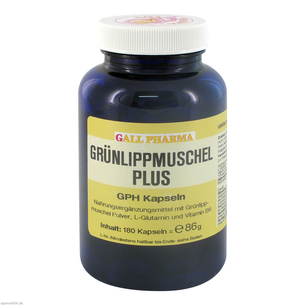 Gall Pharma Grünlippmuschel Kapseln Plus enthalten 333 mg Grünlippmuschelpulver in einer Hartgelatinekapsel. Die Grünlippmuschel zeichnet sich durch ihren hohen Gehalt an Aminozuckern mit positivem Effekt insbesondere bei der Behandlung von Gelenkbeschwerden sowie beim Aufbau körpereigener Gewebe aus. Dieses Produkt erhalten Sie in den Packungsgrößen 60 und 180 Stück.