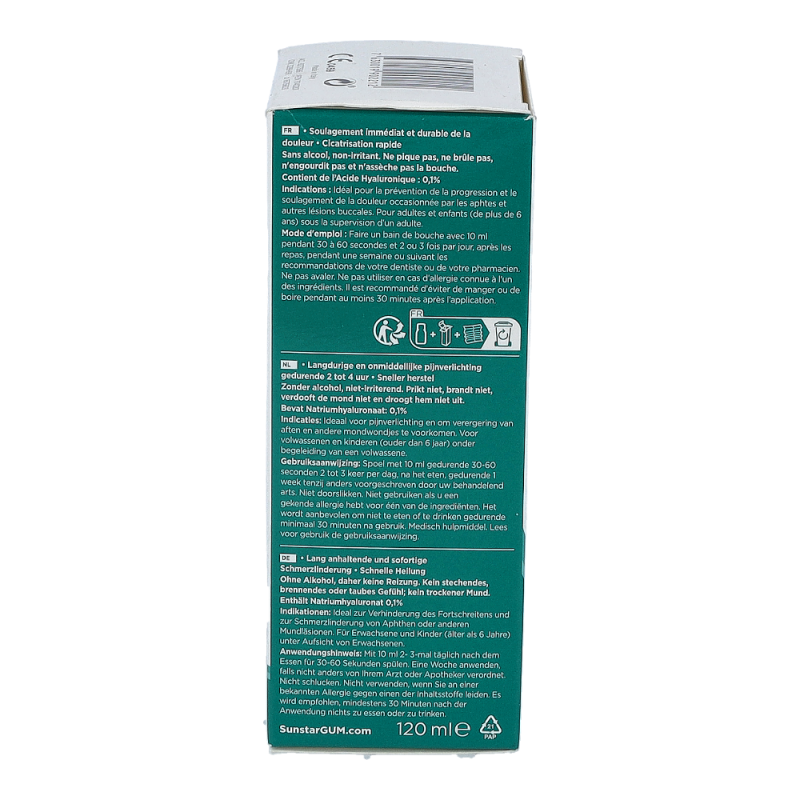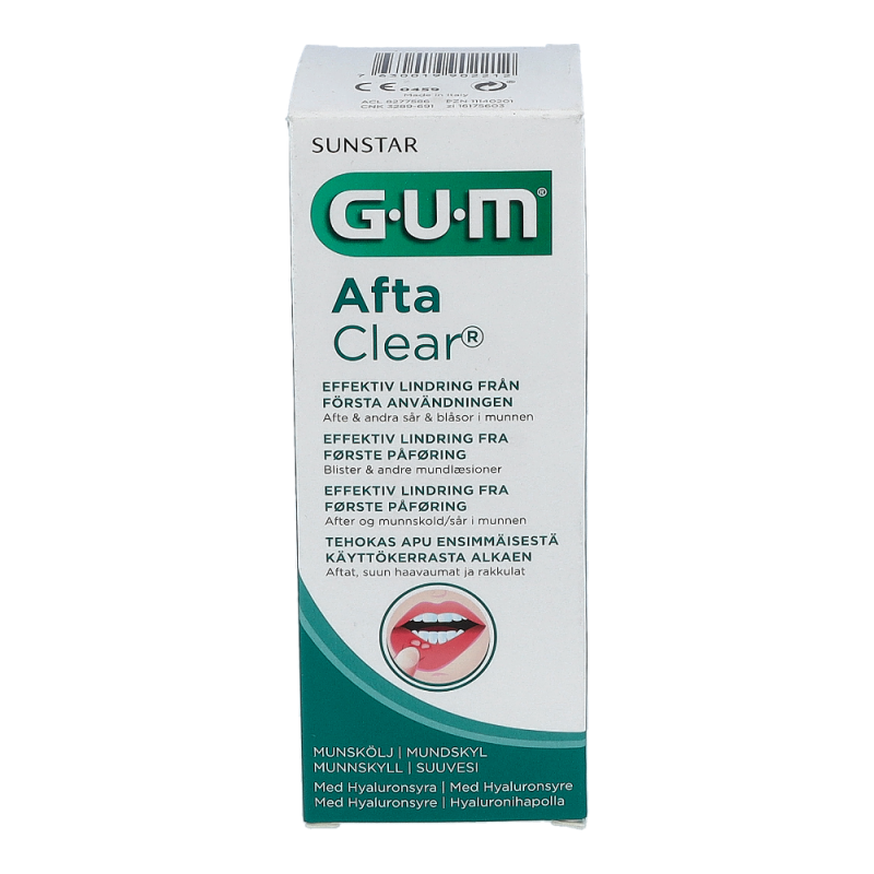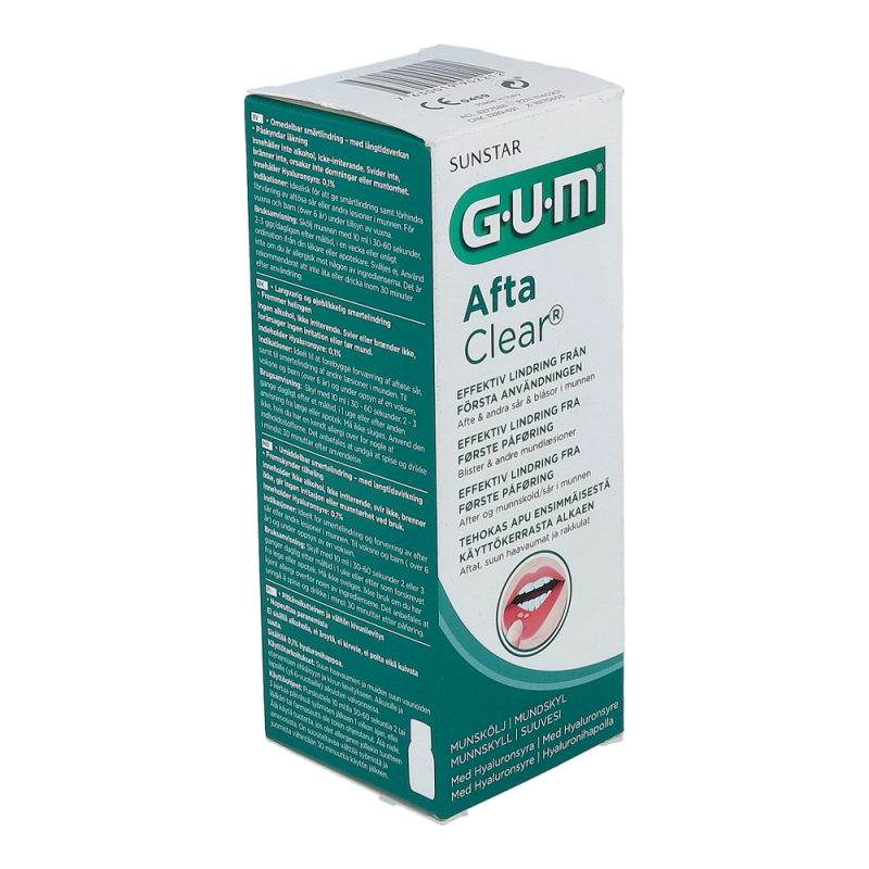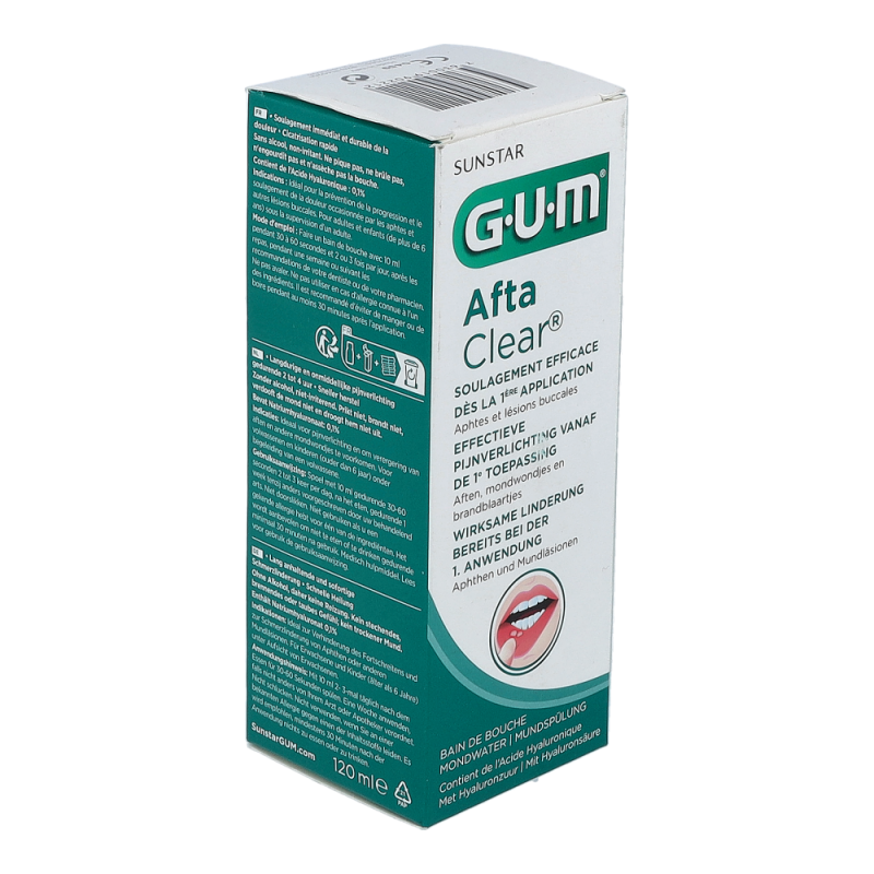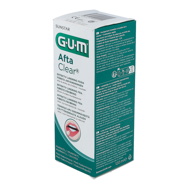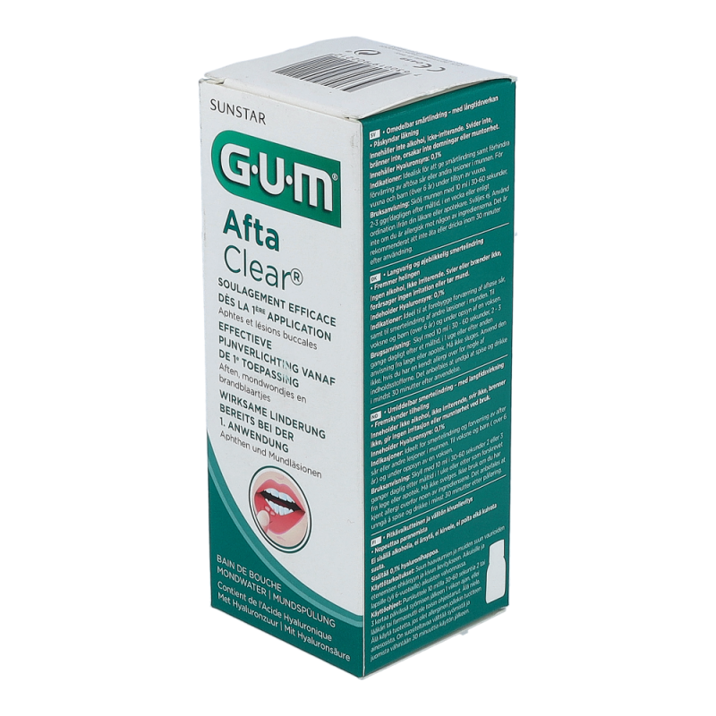 GUM® AftaClear® Mundspülung ist ideal bei multiplen Läsionen oder in schwerzugänglichen Bereichen.Zur Prophylaxe von wiederkehrenden und / oder fortschreitendenAphthen oder sonstigen Mundläsionen.Mit praktischem Messbecher für eine einfacheAnwendung.Enthält 0,1 % Hyaluronsäure.