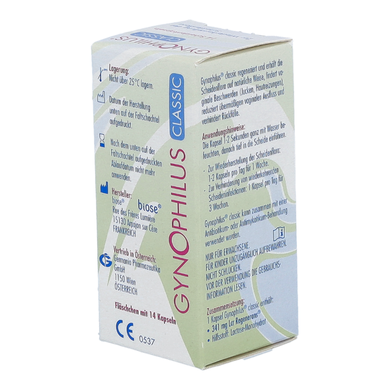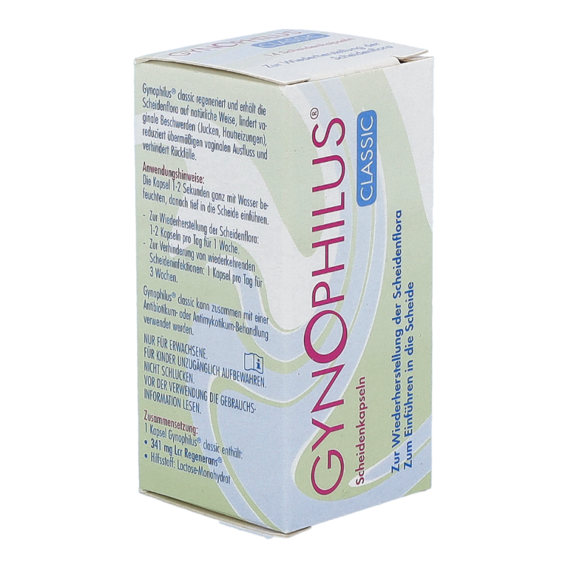 Gynophilus Scheidenkapseln enthalten die Milchsäure produzierenden Lactobacillus casei rhamnosus und unterstützen schnell den Wiederaufbau der gesunden Scheidenflora.
