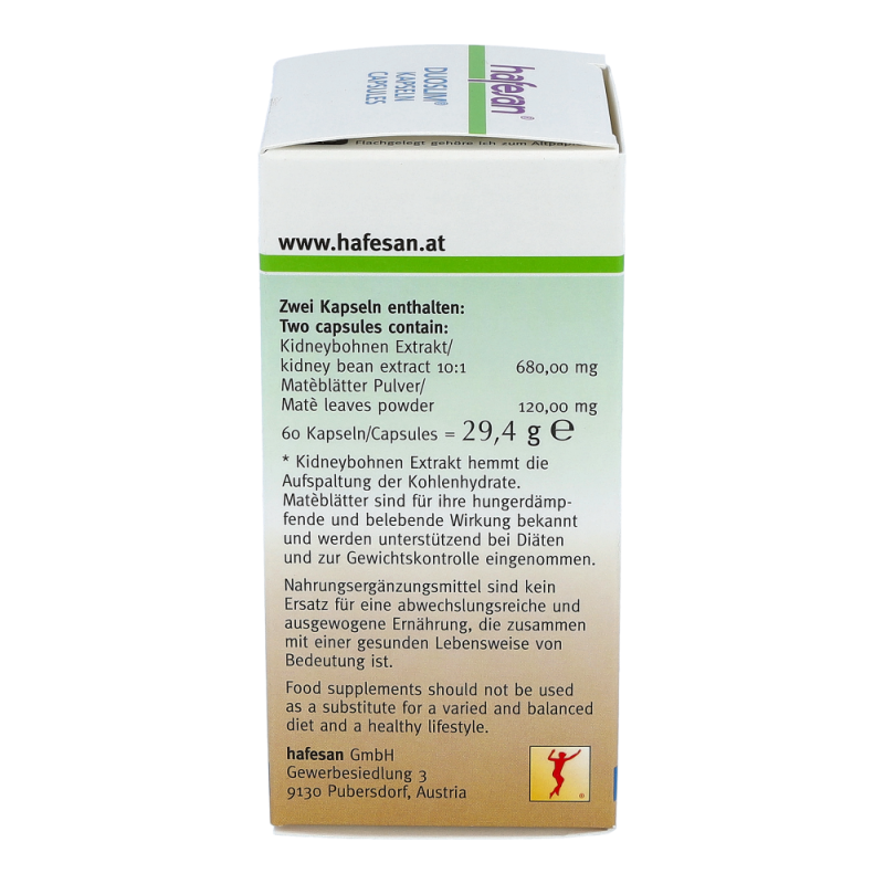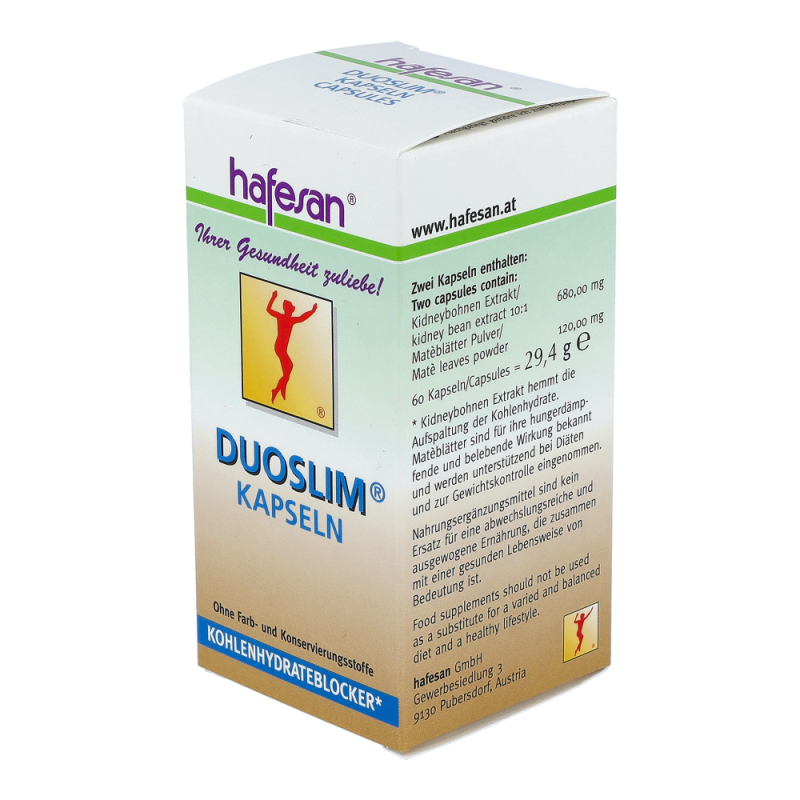 Hafesan® Duoslim Kapseln reduzieren das Hungergefühl, sind appetitmindernd und reduzieren Heißhungerattacken. Zusätzlich wirken sie belebend und verhindern durch die reduzierte Kalorienaufnahme bedingte Müdigkeit und Abgeschlagenheit.