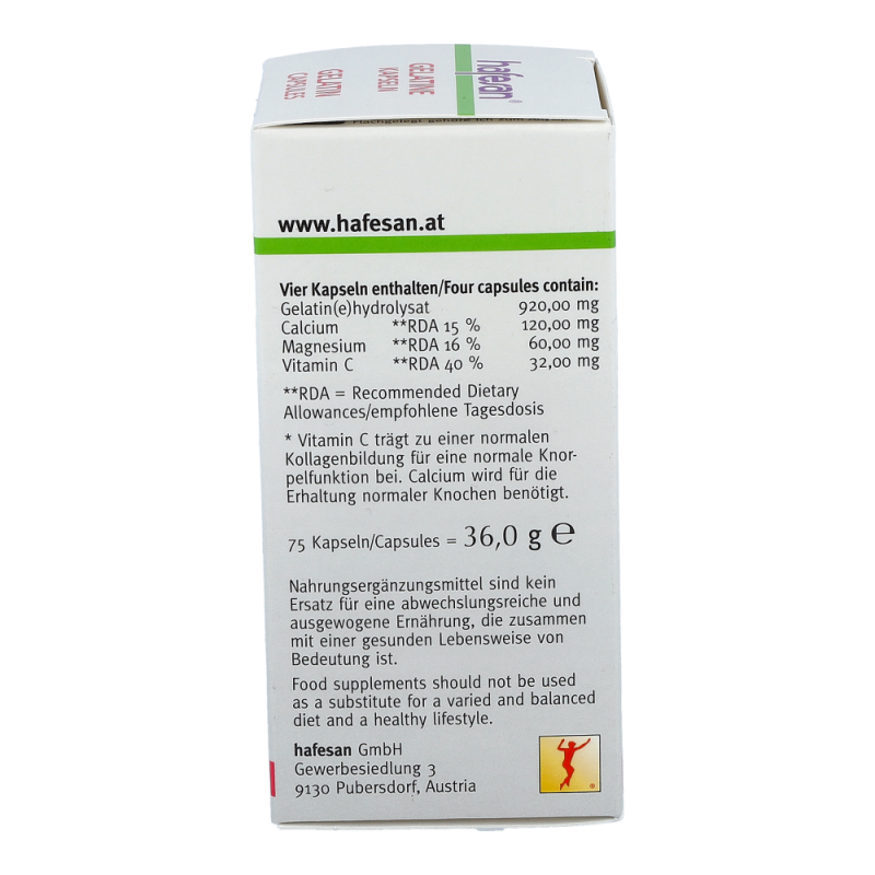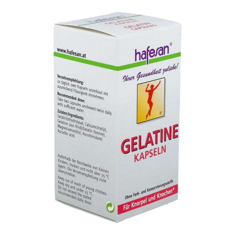 hafesan Gelatine Kapseln wirken sich positiv auf die Beweglichkeit und die Elastizität aus und können eine deutliche Erleichterung bei Problemen mit Bandscheiben, Gelenksknorpel, Bindegewebe und Knochen schaffen..