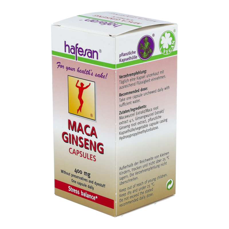 Die Lust am Sex neu entdecken – mit MACA + Ginseng!Abgekühlte Leidenschaft, keine Lust mehr auf den Partner, häufige Müdigkeit und Konzentrationsschwierigkeiten sind nur einige Zeichen der Zeit, mit der sich jeder Mensch früher oder später befassen muss. Doch Grund zur Resignation in solchen Phasen gibt es keinen – denn die Natur hat für uns vorgesorgt und Unterstützungen parat: Maca + Ginseng!Die peruanischen Indios haben schon vor langer Zeit erkannt:Die Maca Wurzel macht stark für das Leben und die Liebe!Die wertvollen Inhaltsstoffe dieser außergewöhnlichen Wurzel wirken als Muntermacher, die eine eingeschlafene Libido wieder wach zu küssen vermögen.Zu den Eigenschaften des besser bekannten Ginseng zählt das Vermögen die Widerstandskraft des Körpers gegen Kälte und körperliche und geistige Schwäche zu stärken, das Gedächtnis und die Konzentrationsfähigkeit zu verbessern, das athletische Leistungsvermögen zu steigern und im allgemeinen zum körperlichen Wohlbefinden in allen Altersstufen beizutragen. Ginseng erhöht die Abwehrbereitschaft des Organismus gegenüber verschiedenen Umwelteinflüssen.Die effektive Kombination dieser beiden wertvollen Natursubstanzen in den hafesan Maca + Ginseng Kapseln wird auch Ihre Lebensgeister wieder erwecken!Die Wirkungen dieser hochwertigen Kapseln, für die ausschließlich natürliche Maca und Ginseng Extrakte verwendet werden, sind vielseitig:- anregend, belebend- stärkende, stimulierende und aphrodisierende Wirkung- steigern die körperliche und geistige Leistungsfähigkeit- bekämpfen Müdigkeit und Stress- beeinflussen günstig die Konzentration und das Allgemeinbefinden.