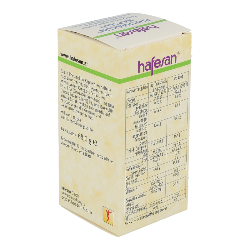 Hafesan® Rheumaklin Kapseln werden zur diätetischen Behandlung von rheumatischen und entzündlichen Beschwerden der Gelenke empfohlen.