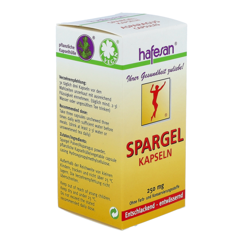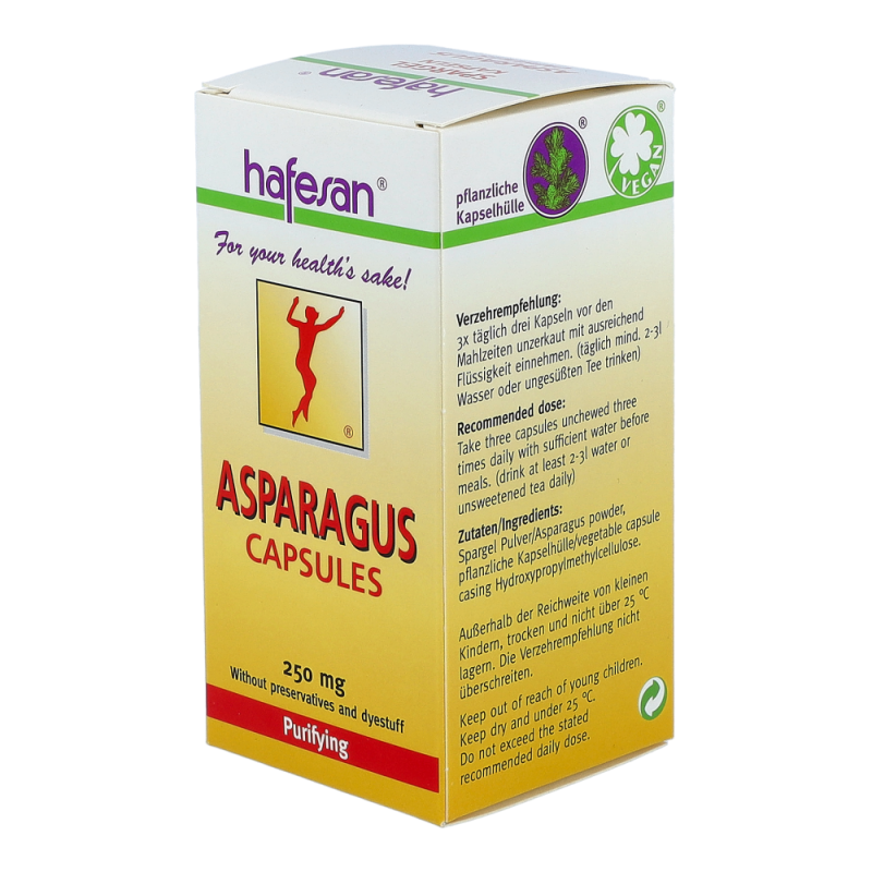 Hafesan® Spargel Kapseln entwässern und entschlacken den Körper auf natürliche Weise. Auch die mild abführende Wirkung wird sehr geschätzt.