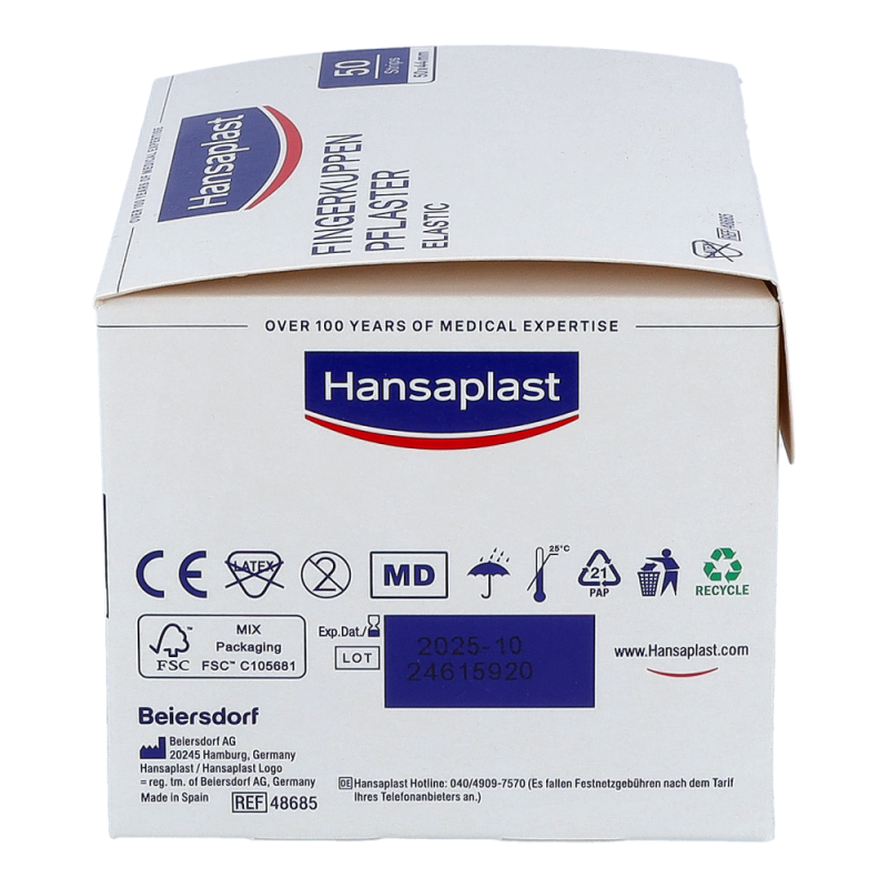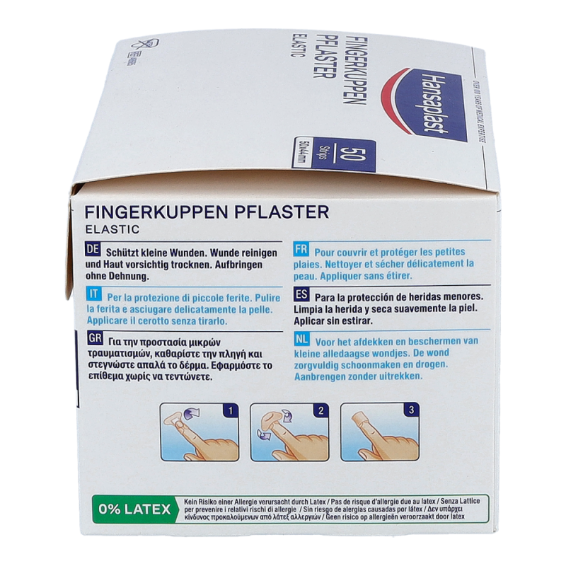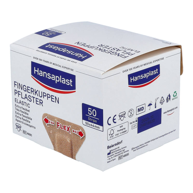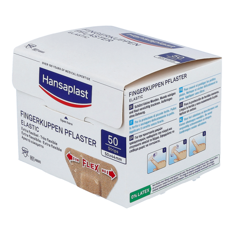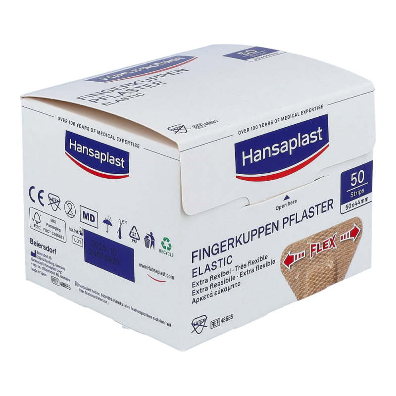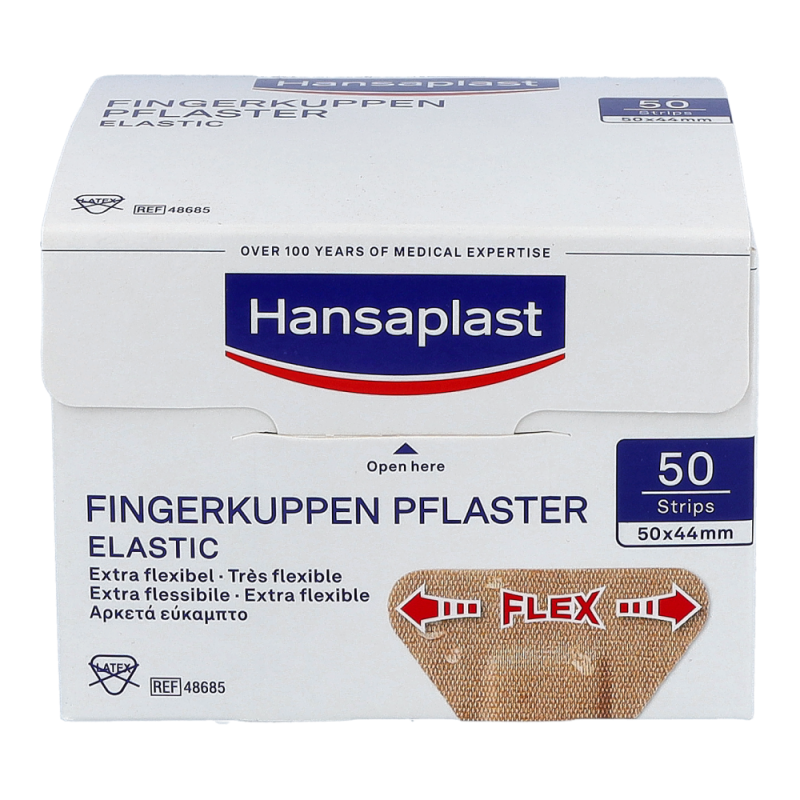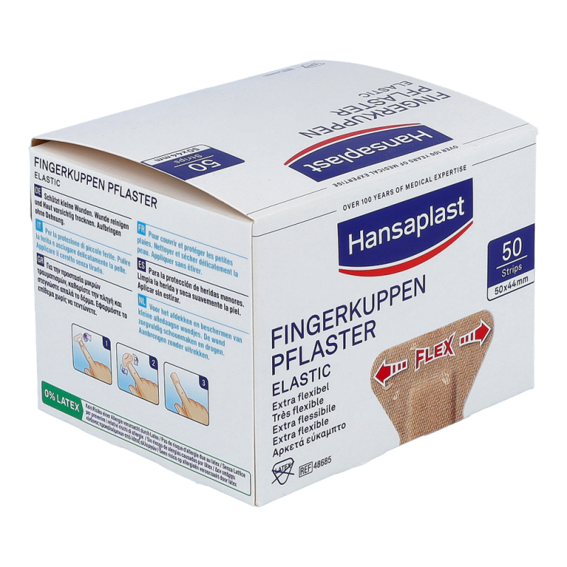 Hansaplast Elastic ist ein luftdurchlässiger, anschmiegsamer und zuverlässig klebender Wundschnellverband für kleine Verletzungen speziell an viel bewegten Körperstellen und Gelenken. Hansaplast Elastic besteht aus einem querelastischen Gewebe mit Vlieswundauflage. Hansaplast Elastic ist erhältlich als Fingerkuppenpflaster, Fingerstrips sowie als latexfreie zuschneidbare Meterware.