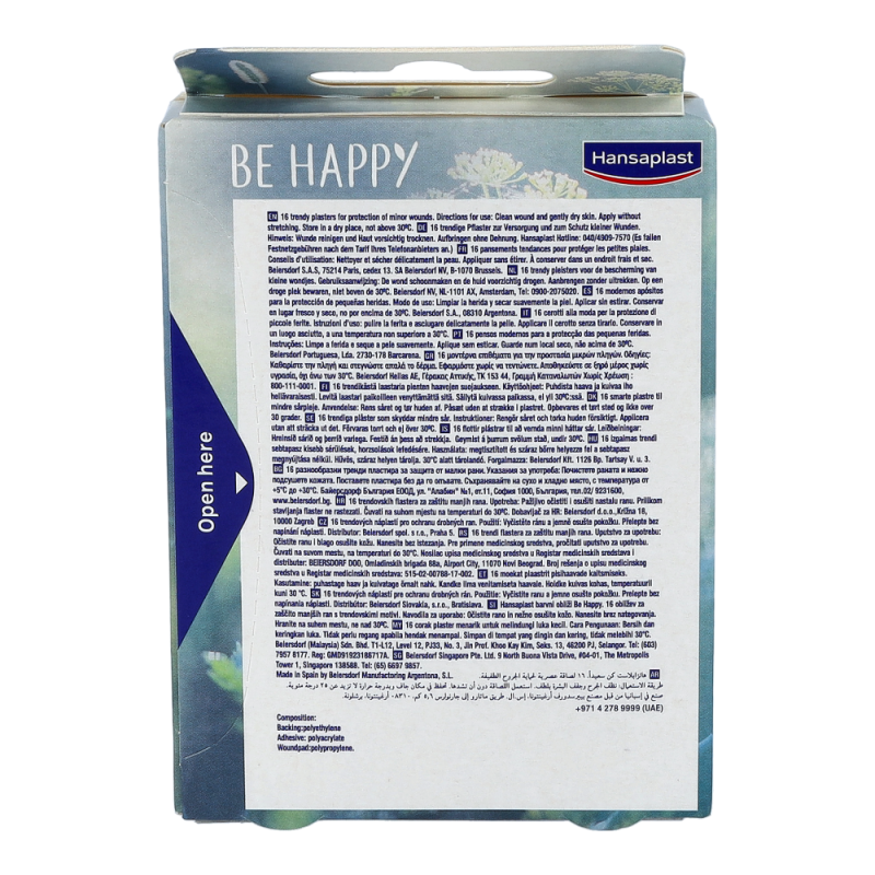 Hansaplast Limited Edition Pflaster Be Happy 16 Stk. in der limitierten Edition "Don't Worry, Be Happy" beinhaltet 16 trendige Pflaster zum Schutz kleiner Wunden: schmerzfrei, leicht zu entfernen und hautfreundlich.