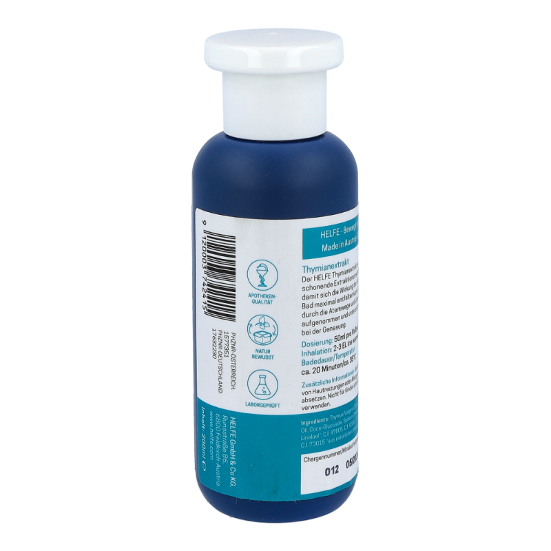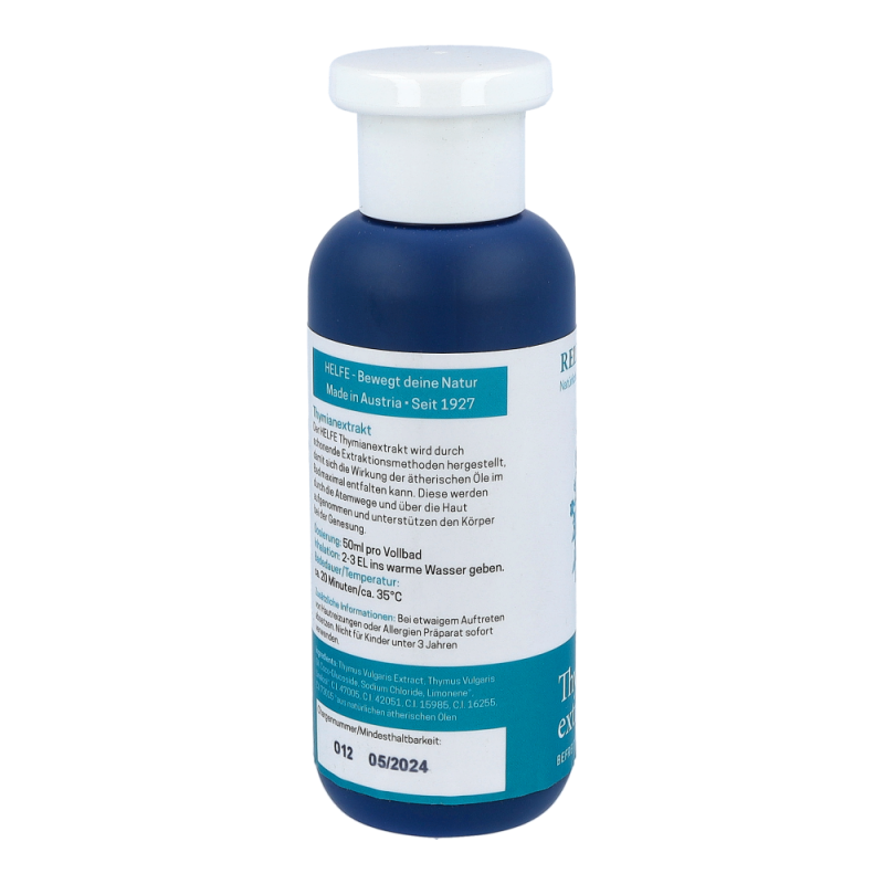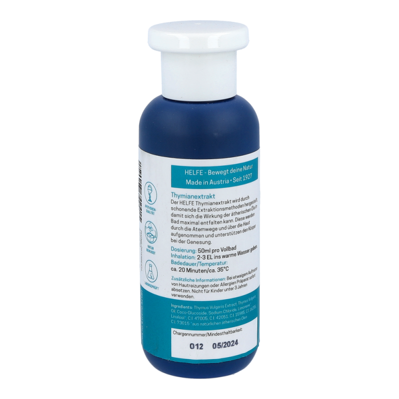 Der HELFE Thymianextrakt wird durch schonende Extraktionsmethoden hergestellt, damit sich die Wirkung der ätherischen Öle im Bad maximal entfalten kann. Diese werden durch die Atemwege und über die Haut aufgenommen und unterstützen den Körper bei der Genesung.