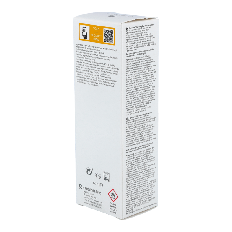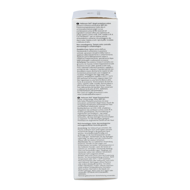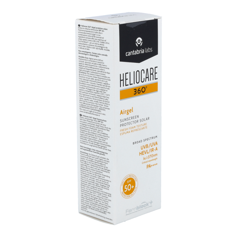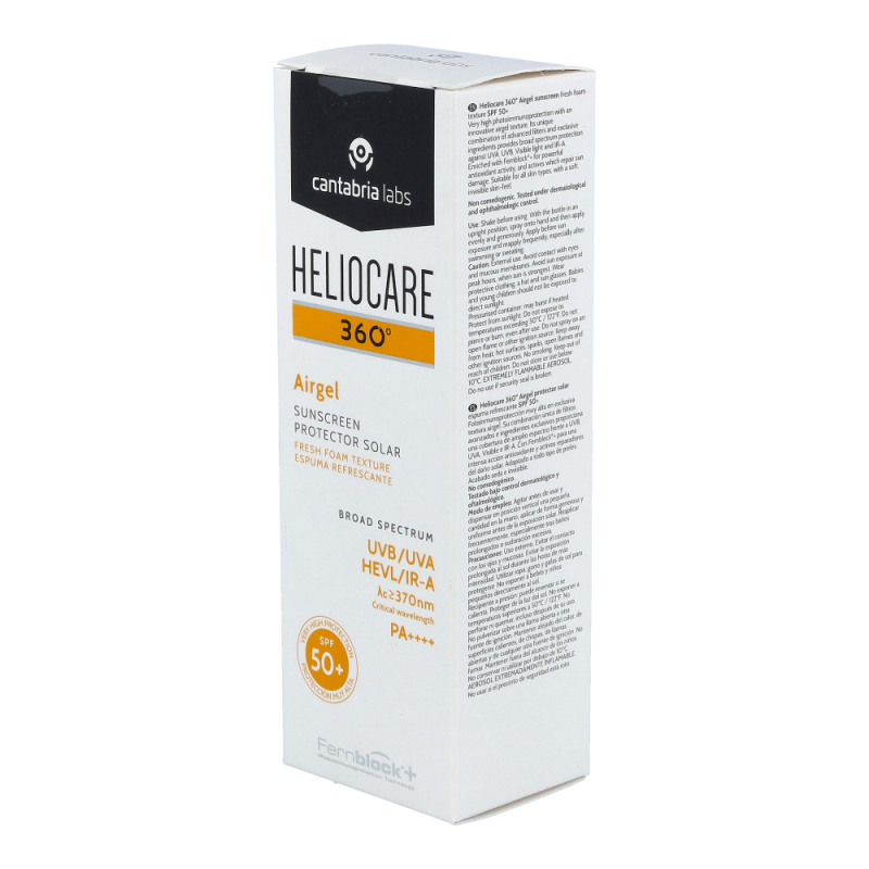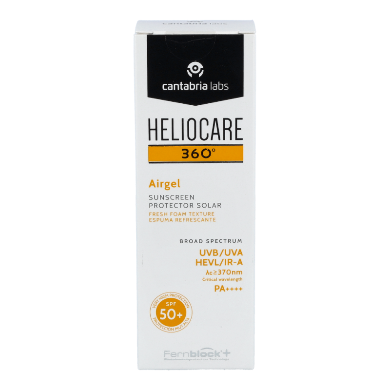Heliocare 360° Airgel ist ein sehr hoher Photoimmunschutz für normale Haut, Mischhaut oder zu Akne neigender Haut. Es ist ein leicht schäumendes Gel, das ein gleichmäßiges Auftragen erleichtert und schnell einziet. Das Gel hinterlässt ein angenehm sanftes Gefühl auf der Haut.