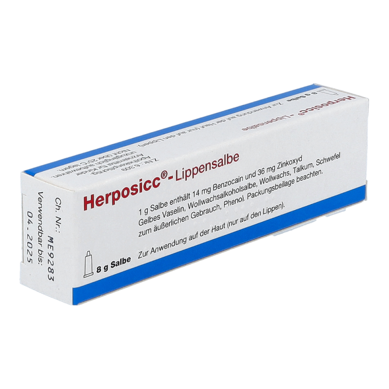 Herposicc ist eine Lippensalbe mit leicht schmerzlindernder Wirkung. Mit ihr können Lippenbläschen schnell abheilen.