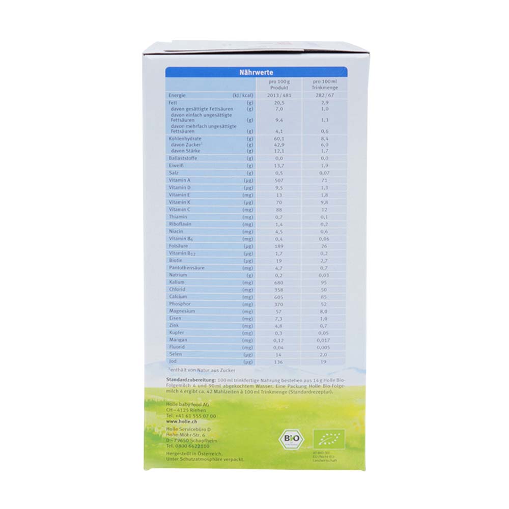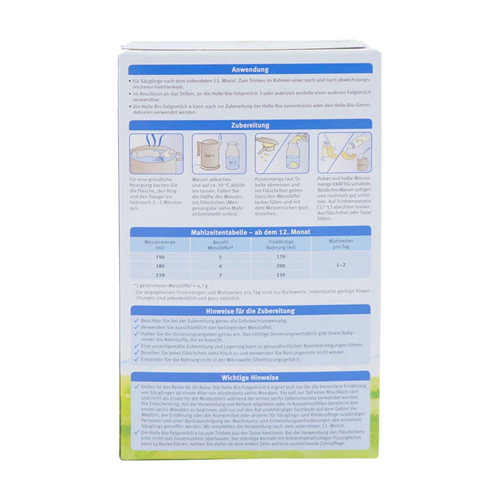Holle BIO-Kindermilch 4 ist ab dem 12. Lebensmonat im Anschluss an jede andere Folgemilch verwendbar. Die Milch eignet sich besonders gut zum Trinken im Rahmen einer gemischten Ernährung – Familienkost – oder zur Zubereitung von Breimahlzeiten.