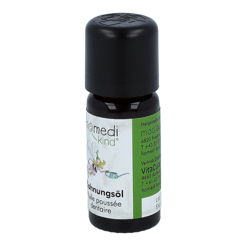 Homedi-Kind® Zahnungsöl entfaltet die beste Wirkung, wenn es von außen in die Wangen einmassiert wird. Es wirkt entspannend und erwärmend. Bei starken Beschwerden zusätzlich die Fußsohle einmassieren.