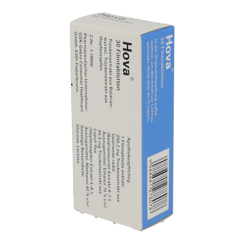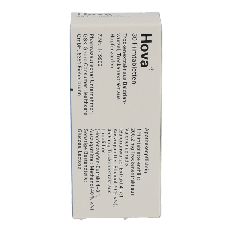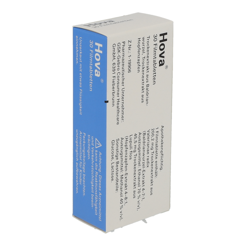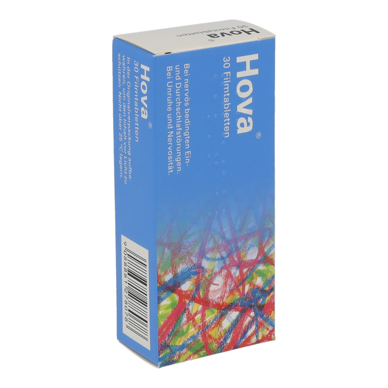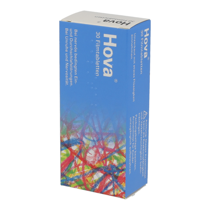 Hova® wirkt beruhigend und entspannend auf den gesamten Organismus. Die Filmtabletten aus Hopfen- und Baldrianextrakten werden zur natürlichen Behandlung von Nervosität und nervös bedingten Schlafstörungen angewendet.