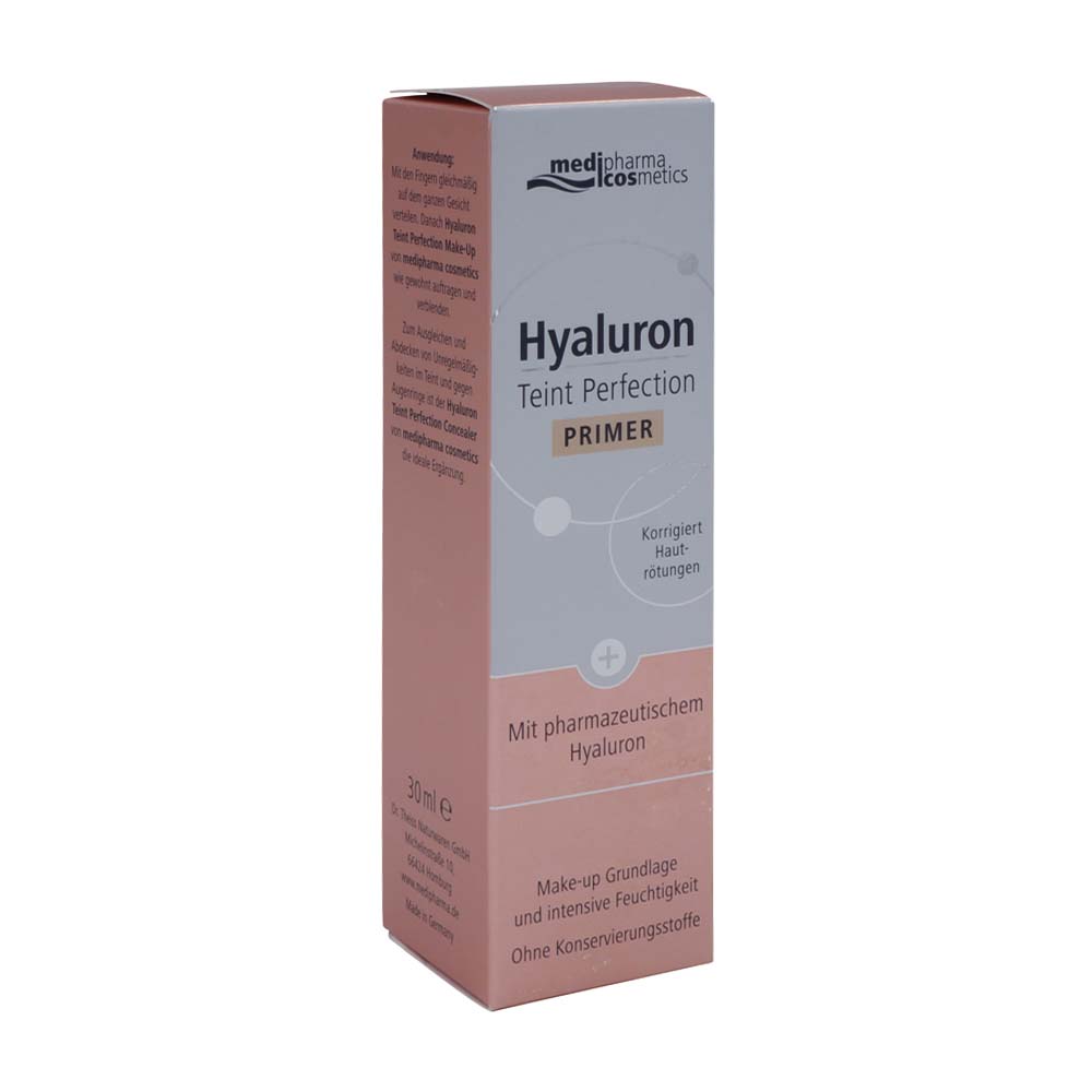 Hyaluron Teint Perfektion Primer 30 ml mit pharmazeutischem Hyaluron korrigiert Hautrötungen. Der Primer ist die ideale Make-up Grundlage und spendet intensive Feuchtigkeit.