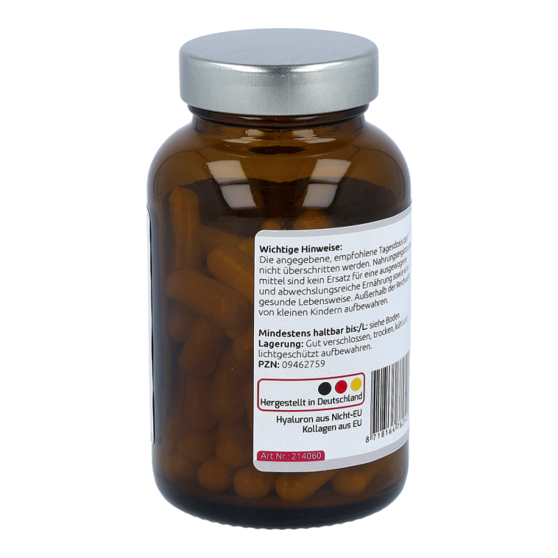 Unser Produkt enthält 100mg Hyaluronsäure PRO KAPSEL, vergleichen Sie dies mit anderen Anbietern, so werden Sie feststellen, dass eine Vielzahl der Produkte nur die Hälfte an Hyaluronsäure enthält.
