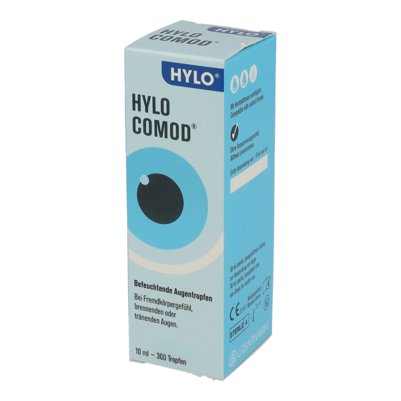 HYLO COMOD® befeuchtende Augentropfen bieten trockenen Augen die Feuchtigkeit, die sie benötigen. HYLO COMOD® befeuchtende Augentropfen bieten eine wirkungsvolle und zuverlässige (Rück-) Befeuchtung trockener Augen. Durch die Ergänzung des natürlichen Tränenfilms sind die Augen langanhaltend vor schwerwiegenden Schädigungen durch Austrocknung geschützt. Somit sind HYLO COMOD® befeuchtende Augentropfen die richtige Lösung bei Beschwerden trockener Augen.