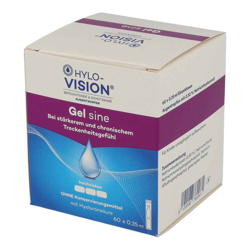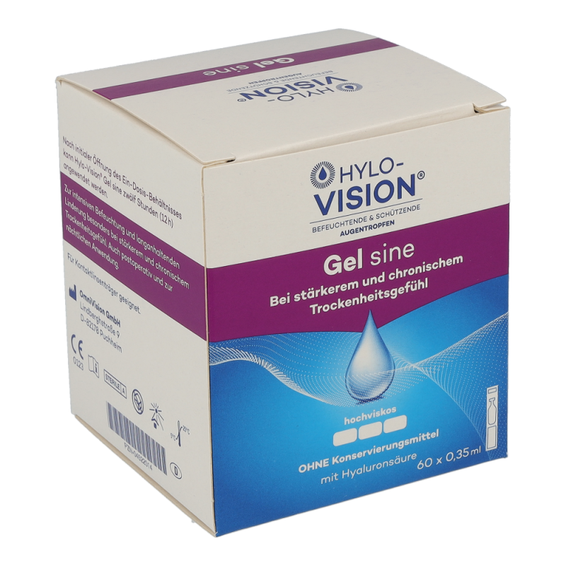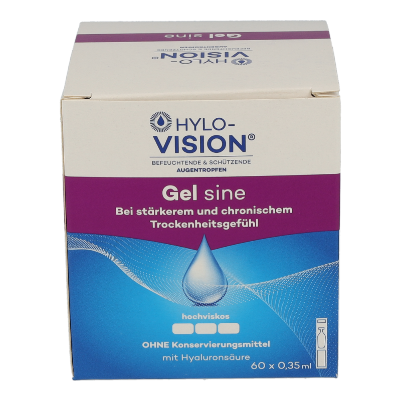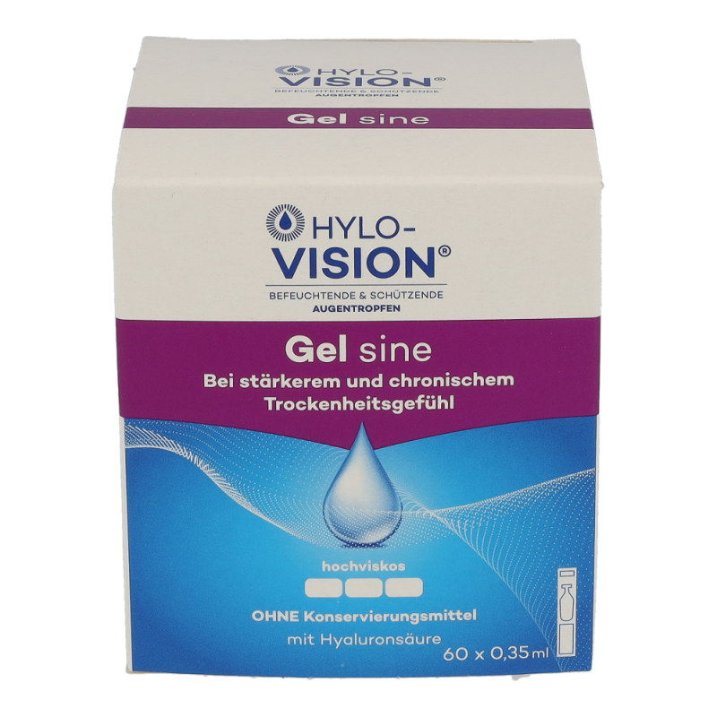 Eine Wohltat für trockene Augen sind Benetzungsmittel mit dem Inhaltsstoff Hyaluronsäure, das in den Hylo-Vision®-Zubereitungen (Hylo-Vision® HD, Hylo-Vision® HD plus, Hylo-Vision® sine, Hylo-Vision® Gel sine, Hylo-Vision® SafeDrop®, Hylo-Vision® SafeDrop® Gel und Hylo-Vision® Gel multi) enthalten ist. Die in den Augentropfen enthaltene Hyaluronsäure befeuchtet die Augenoberfläche bei trockenen und brennenden Augen– also Horn- und Bindehaut – sehr ähnlich der körpereigenen Tränenflüssigkeit und ist als natürliche Substanz sehr gut verträglich. Sie bildet einen klaren, lang anhaltenden Schutzfilm auf der Augenoberfläche. Hyaluronsäure unterstützt zudem die Regeneration der Hornhaut bei trockenen Augen.