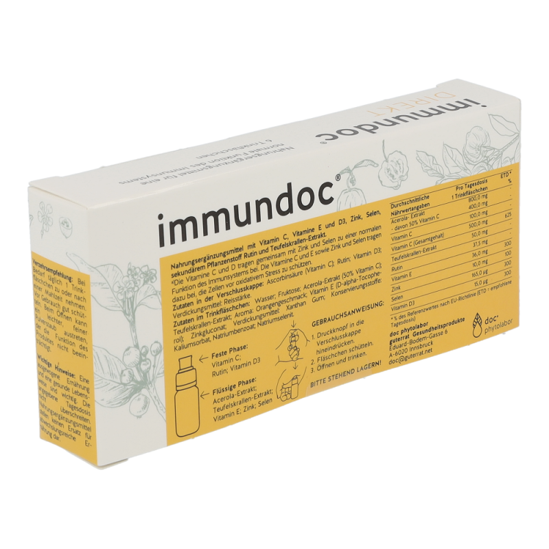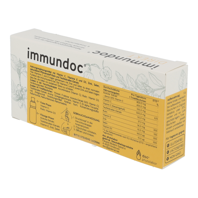 Nahrungsergänzungsmittel mit Vitamin C,Vitamine E und D3, Zink, Selen, sekundäremPflanzensto ff Rutin und Teufelskrallen-Extrakt.Die Vitamine C und D tragen gemeinsam mit Zinkund Selen zu einer normalen Funktion desImmunsystems bei. Die Vitamine C und E sowieZink und Selen tragen dazu bei, die Zellen voroxidativem Stress zu schützen..