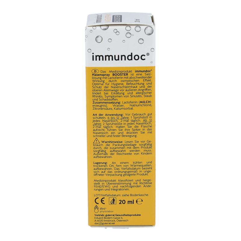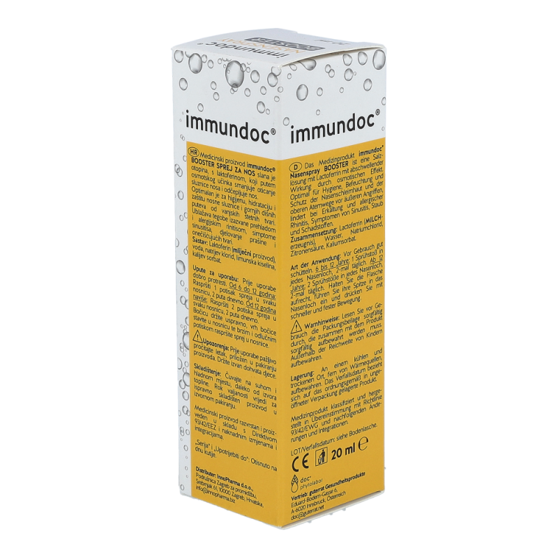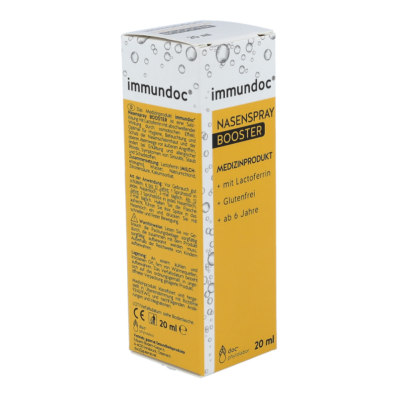 immundoc Nasenspray Boost ist eine Salzlösung mit Lactoferrin mit abschwellender Wirkung durch osmotischen Effekt. Optimal für Hygiene, Befeuchtung und Schutz der Nasenschleimhaut und der oberen Atemwege vor äußeren Angriffen, lindert bei Erkältung und allergischer Rhinitis, Symptomen von Sinusitis, Staub und Schadstoffen.