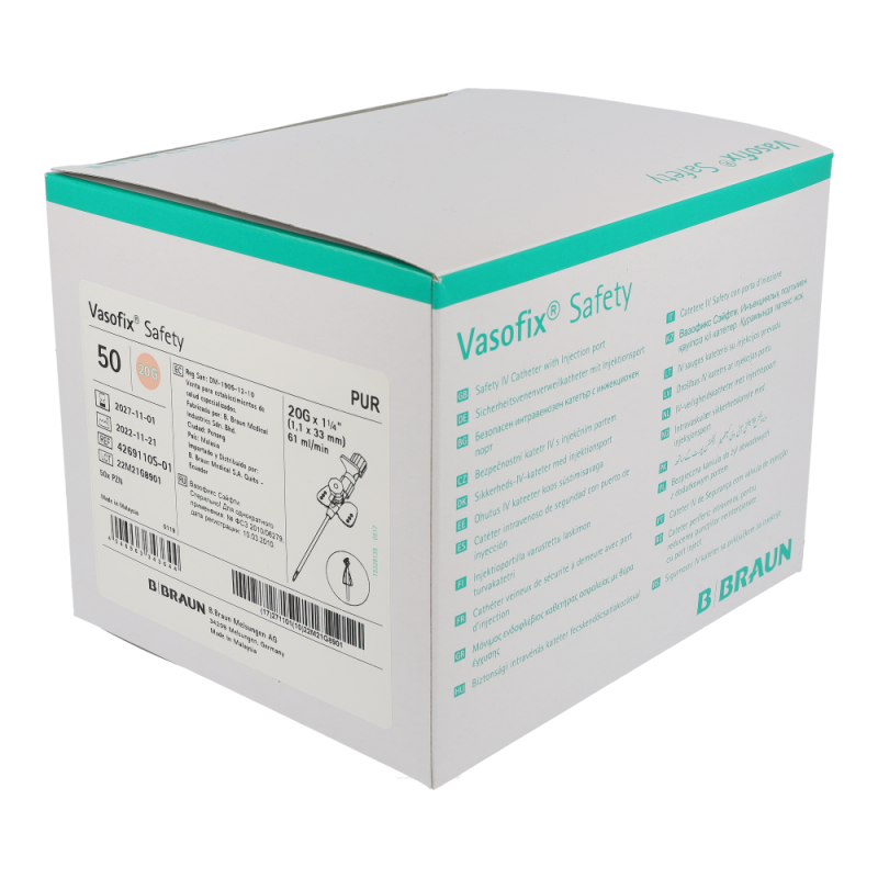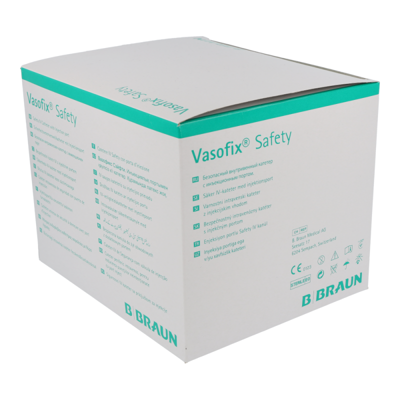 Injektionsverweilkanüle Vasofix Saf G20 ist mit einem Zuspritzventil ausgestattet. So wird ein sanfter Übergang zwischen Katheterrohr und Kanüle gewährleistet. Einzeln verpackt.