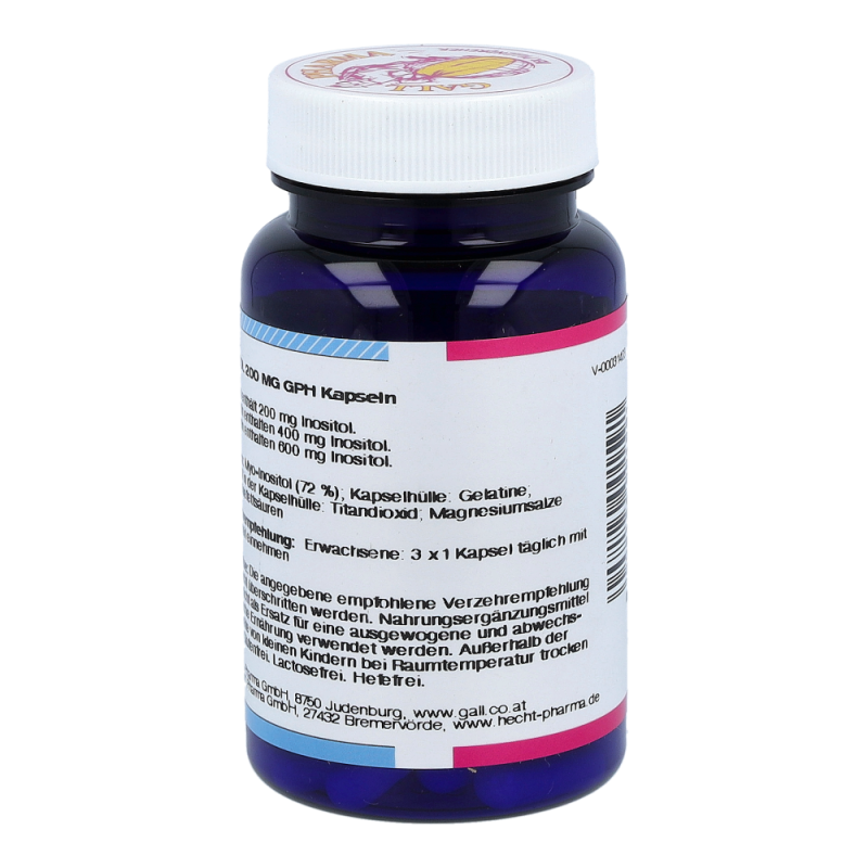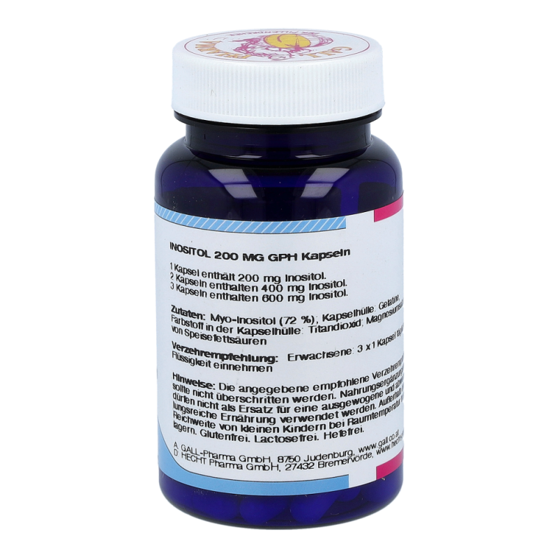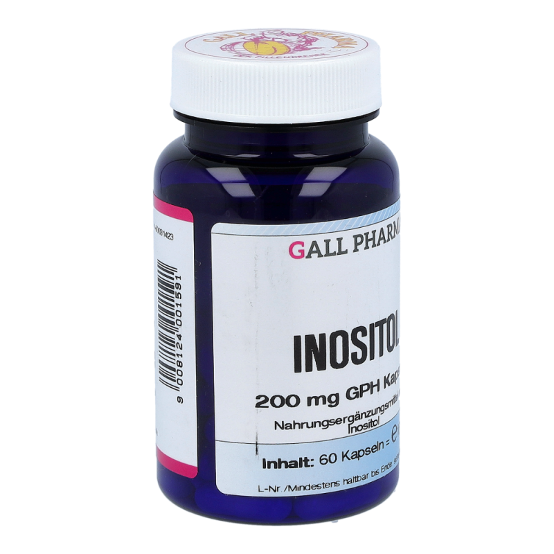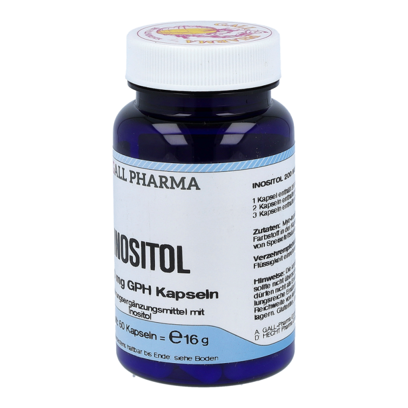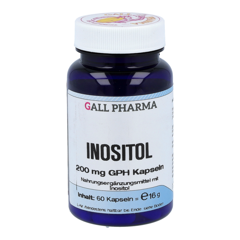 Gall Pharma Inositol 200 mg Kapseln enthalten 200 mg Myoinositol in einer Hartgelatinekapsel. Inositol gehört zur Gruppe der B-Vitamine und ist Bestandteil von Lecithin. Es kommt hauptsächlich in Fleisch, Milch, Bohnen, Getreide, Nüssen und Früchten vor. Außerdem kann Inositol von den Darmbakterien gebildet werden, wodurch ein wesentlicher Teil des täglichen Bedarfs gedeckt wird.