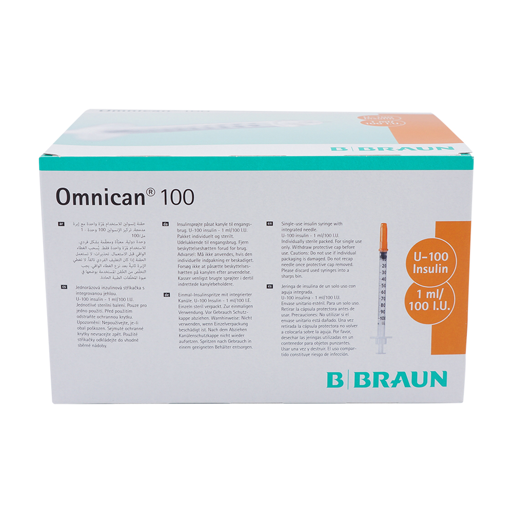 Insulininjektion Einmalspritze Omnican ist eine Einmal-Insulinspritze für U-100-Insulin mit integrierter Kanüle. Um eine exakte Dosierung zu erreichen, verfügt die Spritze über eine große, einfach zu lesende Skalierung. Dieses Produkt erhalten Sie in den Größen 0,3 x 12 mm und 0,3 x 8 mm.